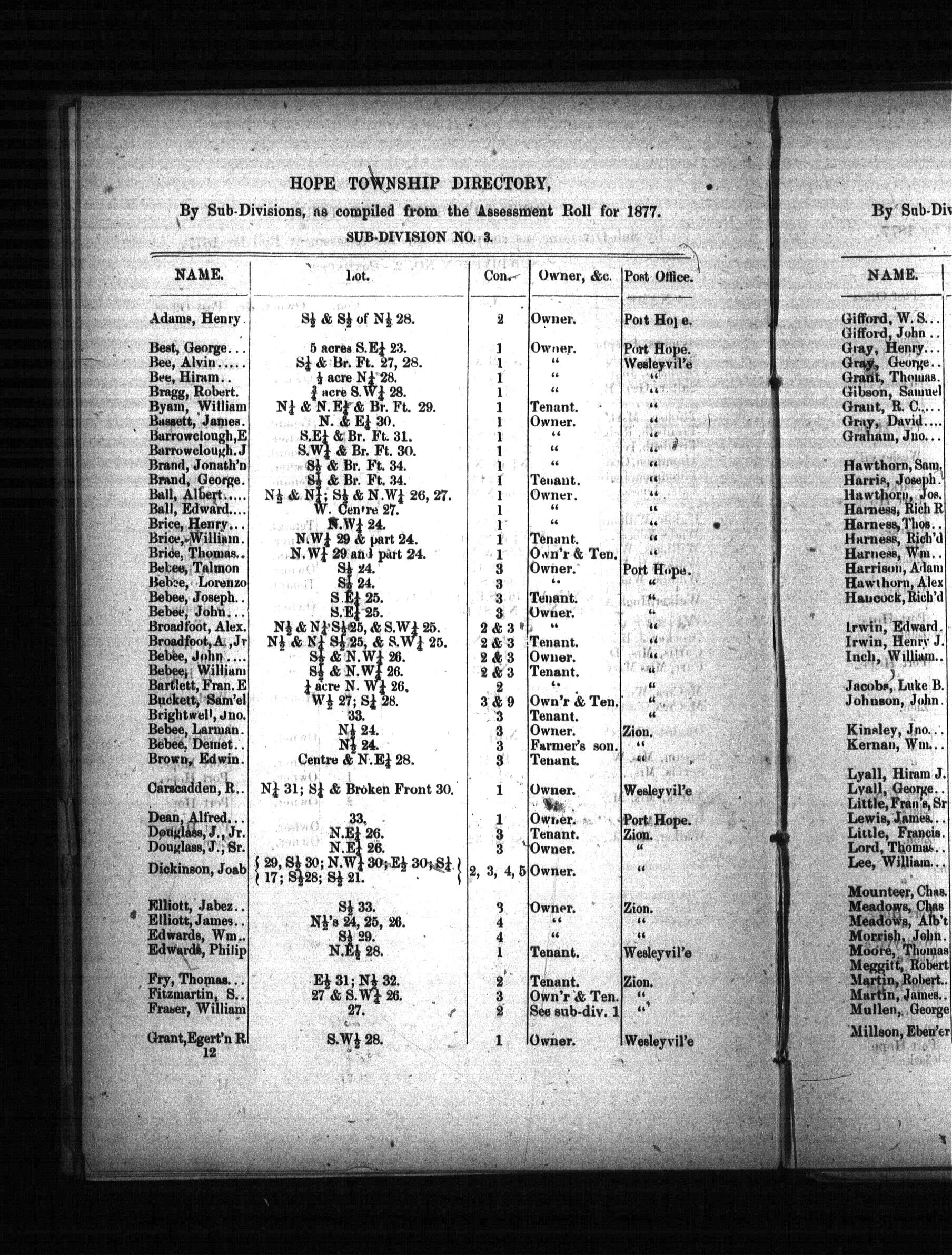 Directory of the township of Hope by sub-divisions, as compiled from the Assessment Roll for year ... : Directory of the township of Hope by sub-divisions, as compiled from the Assessment Roll for year 1877 : 1877