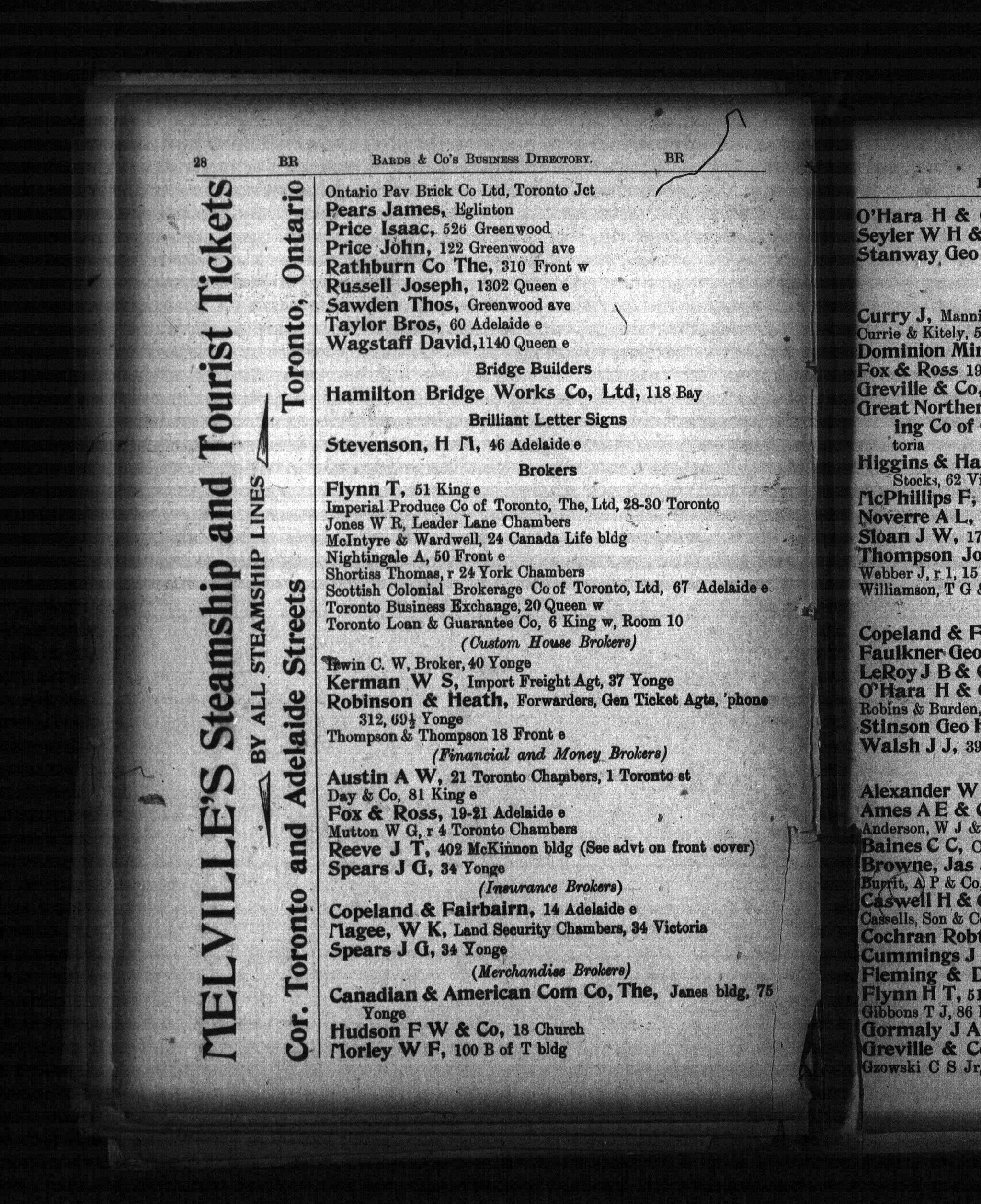 Bards & Co's business and professional directory of Toronto, Hamilton, London, Brantford, Guelph, Stratford, St. Thomas, Ingersoll, Waterloo, Berlin, Galt, Woodstock, etc. : embracing a classified list of all business and professional men in the cities above named for the years of 1898-9 : First (1898/9)