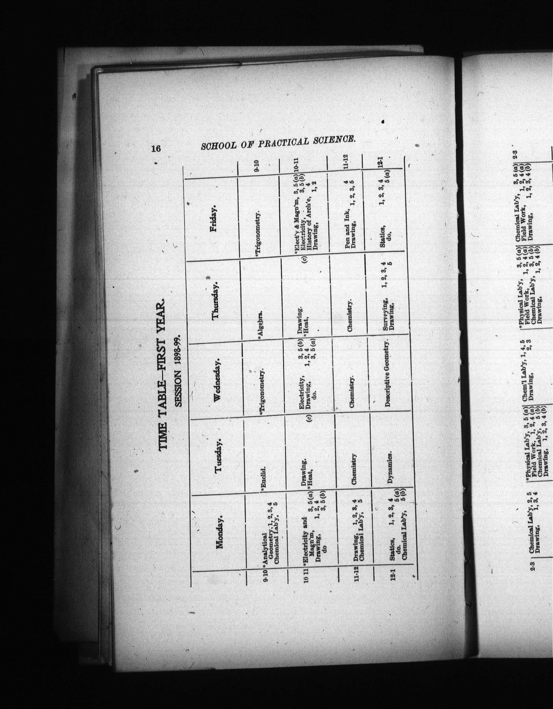 - Calendar of the School of Practical Science of the province of Ontario, Toronto : Twenty-First Session (1898/1899)