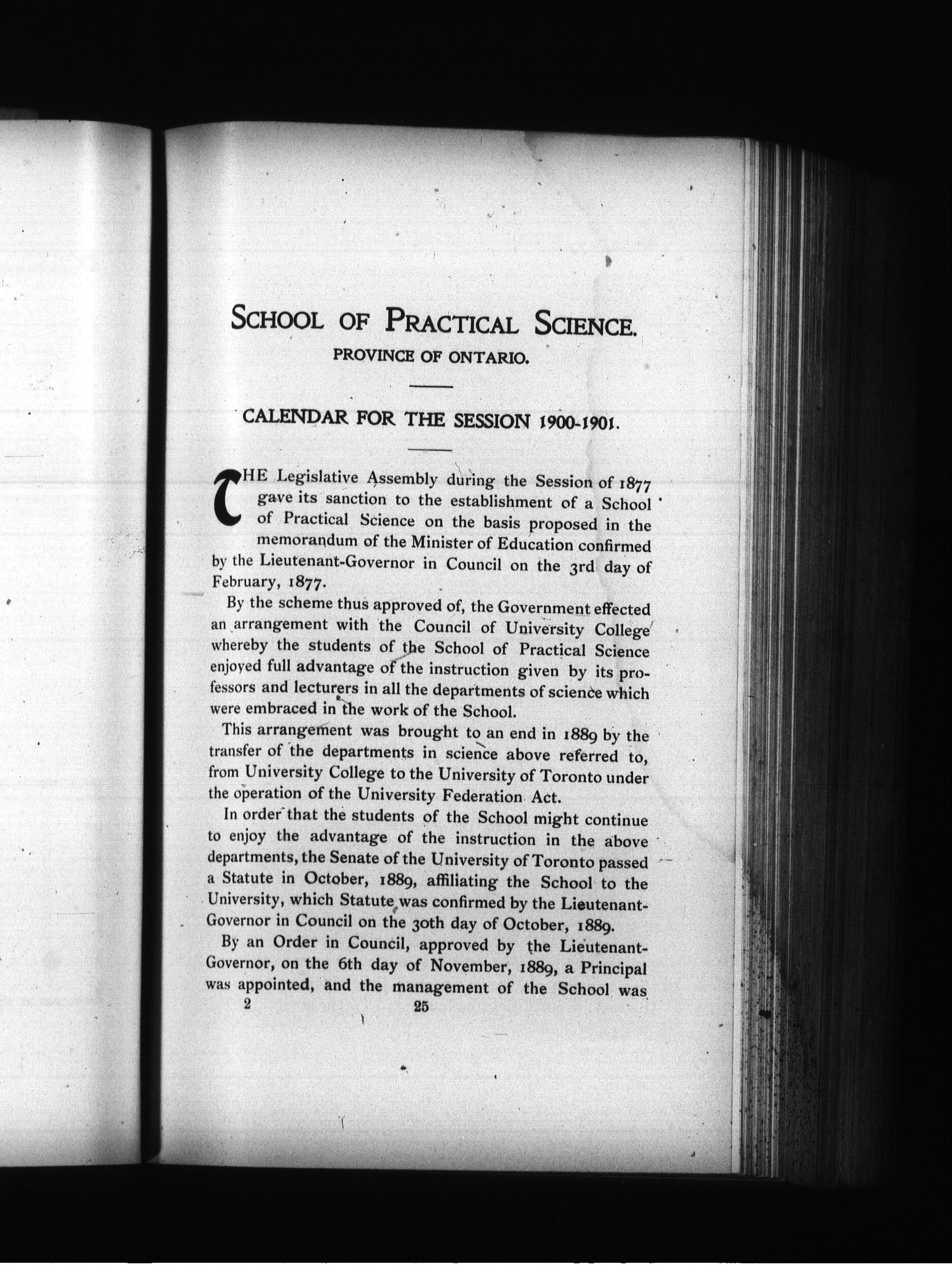 - Calendar of the School of Practical Science of the province of Ontario, Toronto : Twenty-Third Session (1900/1901)