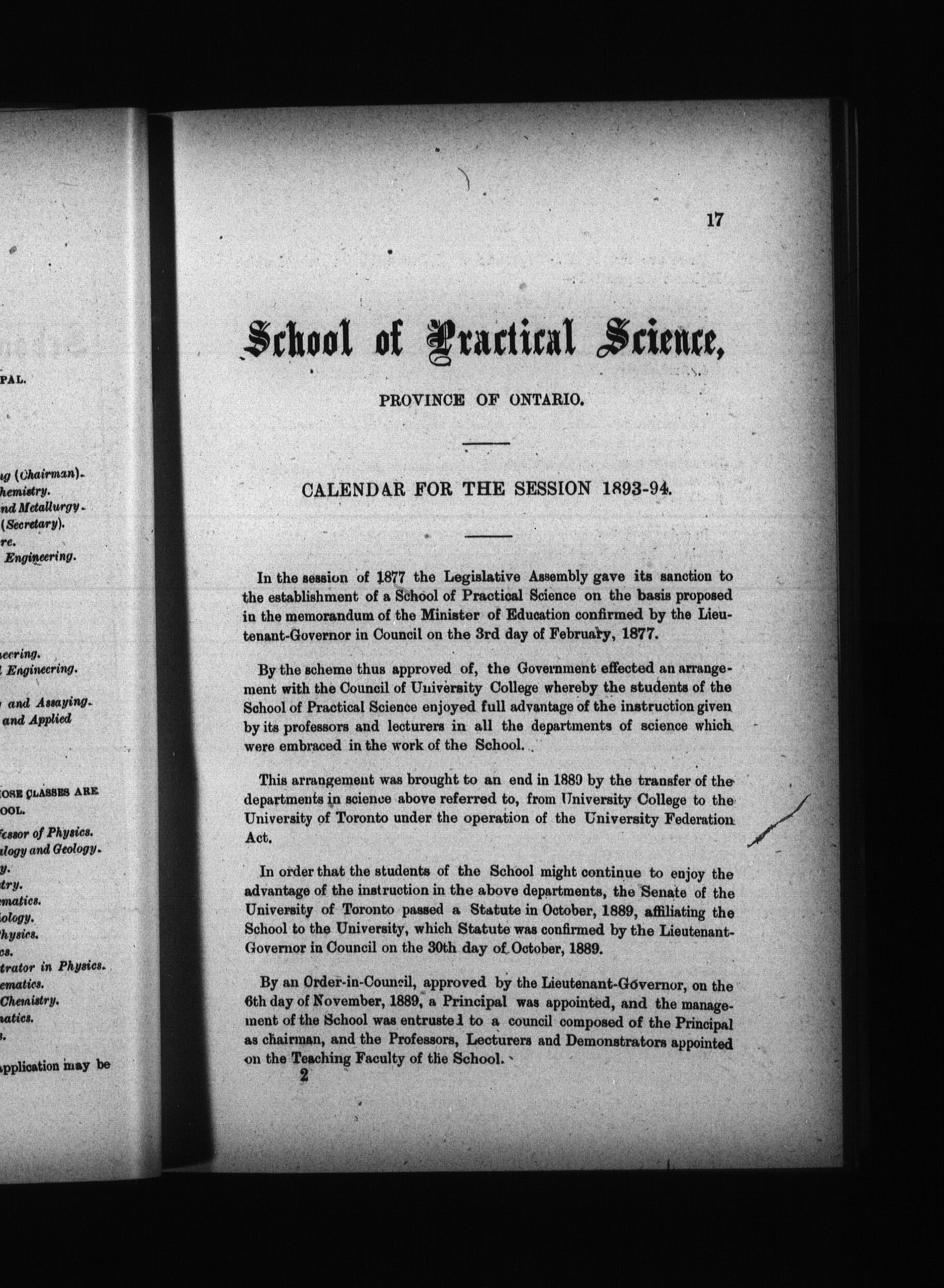 - Calendar of the School of Practical Science, province of Ontario : 16th Session (1893/94)
