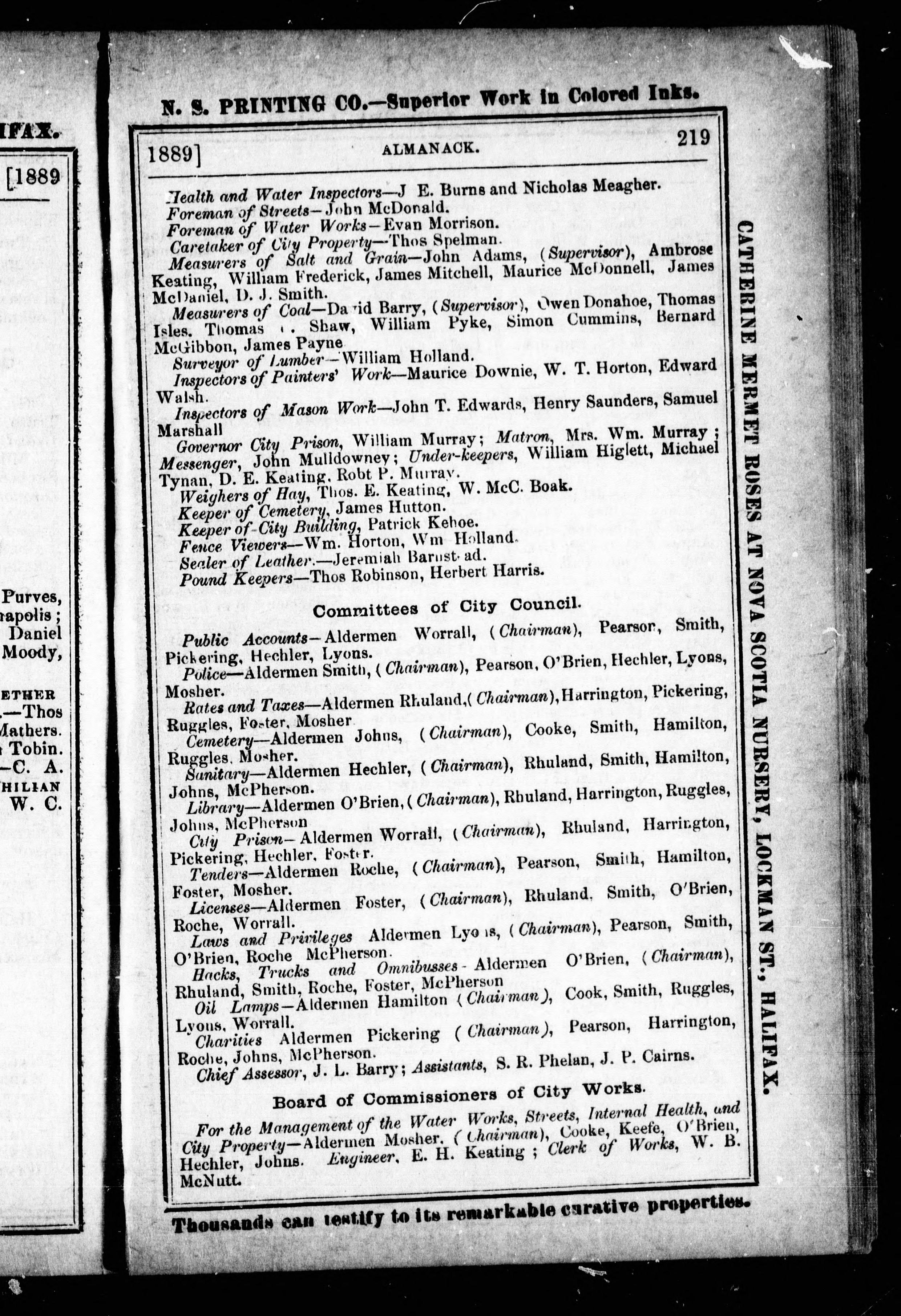 Halifax, N.S.: Published by the Proprietors, McAlpine & Barnes, [1889?]; 281 images, 278 avec recherche en texte intégral