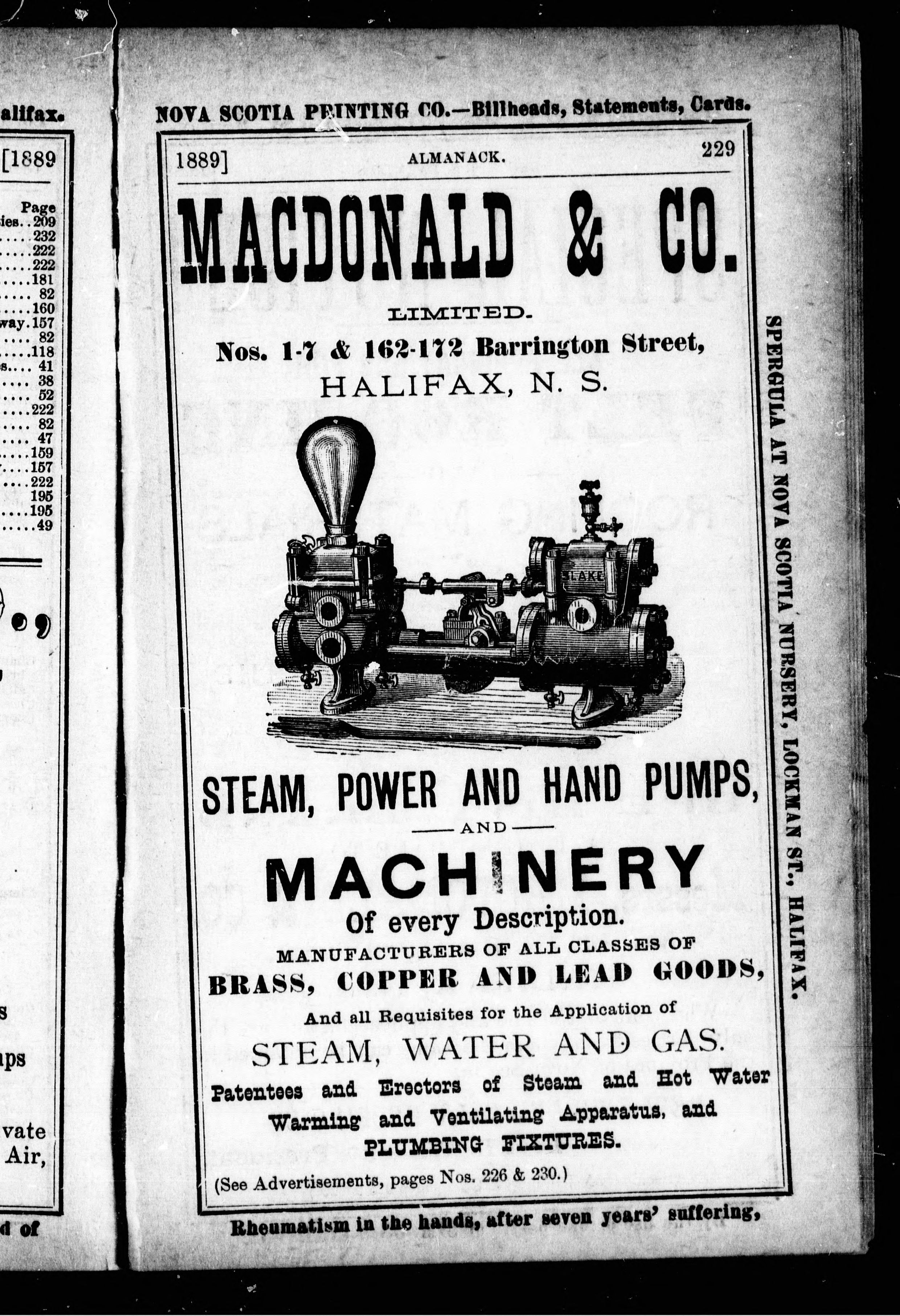 Halifax, N.S.: Published by the Proprietors, McAlpine & Barnes, [1889?]; 281 images, 278 avec recherche en texte intégral