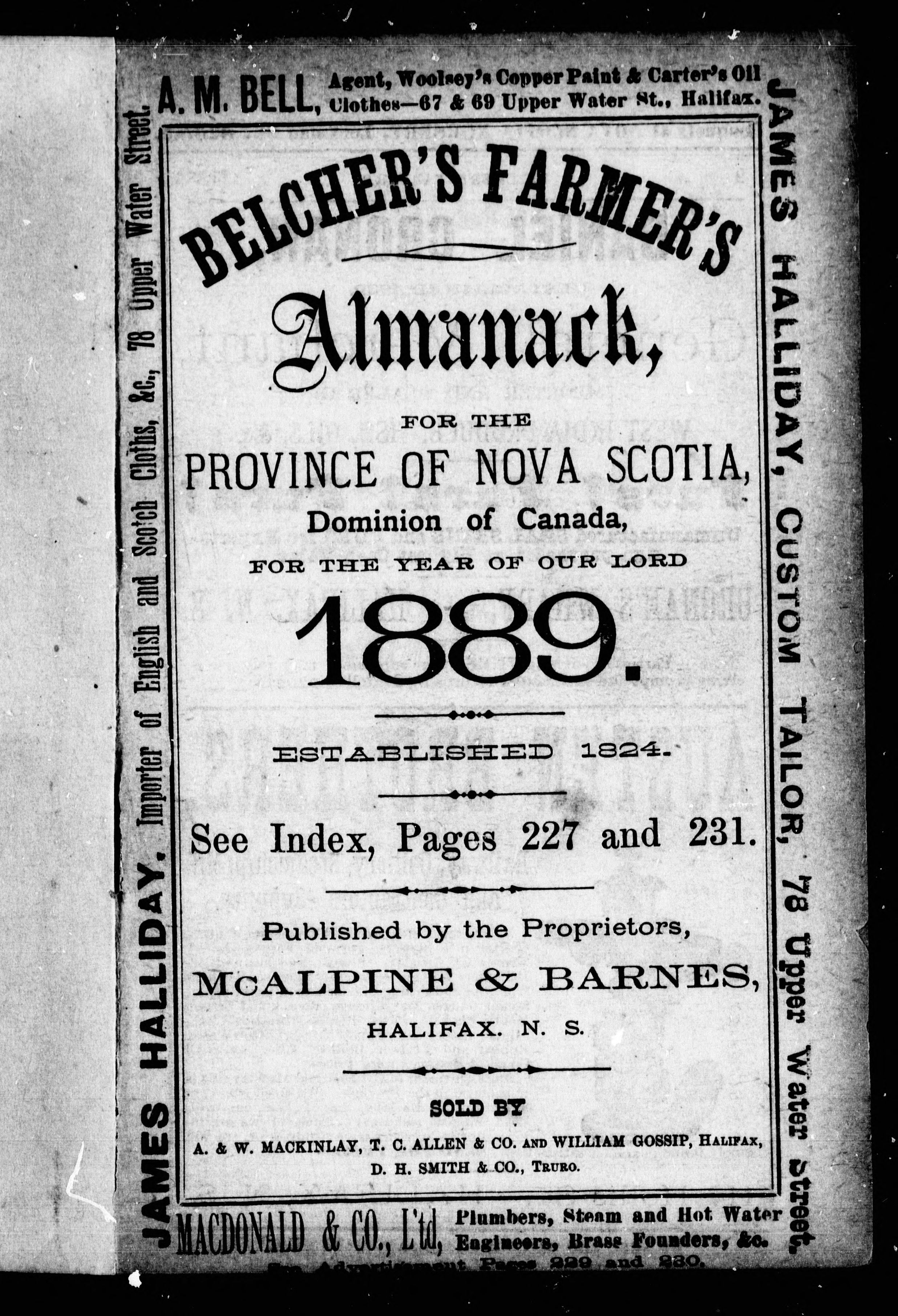 Halifax, N.S.: Published by the Proprietors, McAlpine & Barnes, [1889?]; 281 images, 278 avec recherche en texte intégral