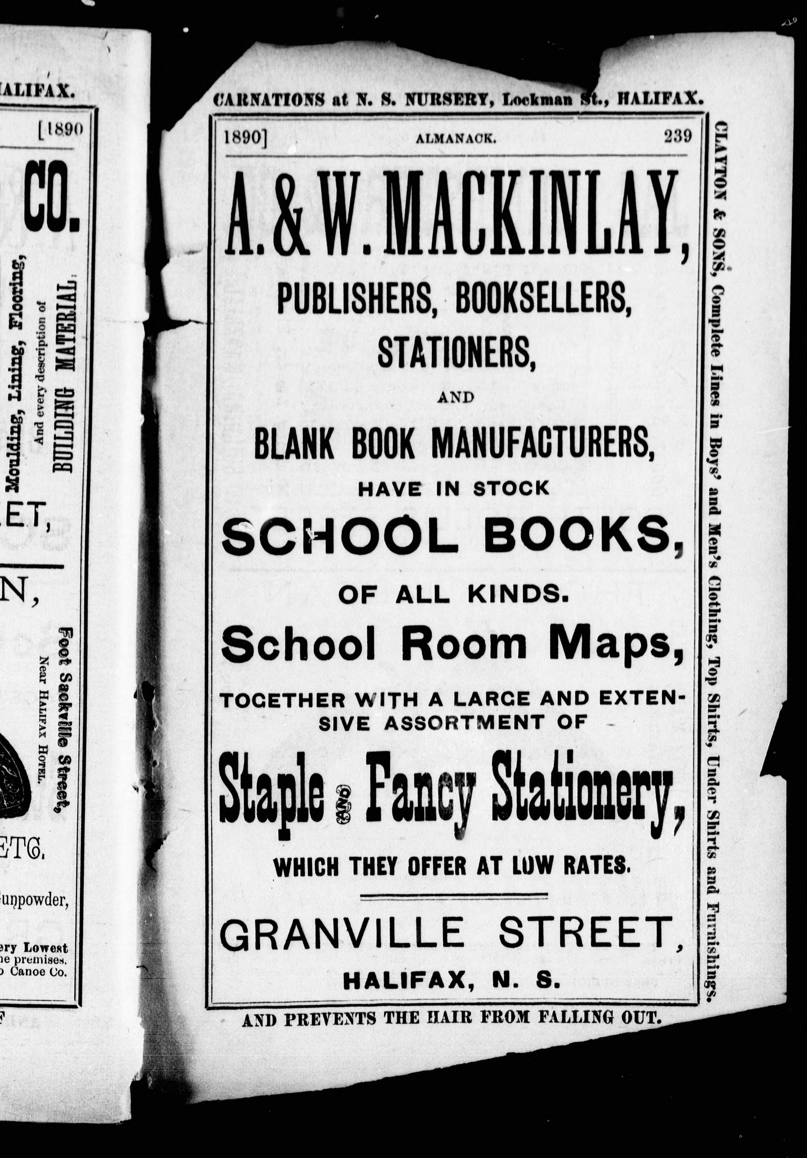 Halifax, N.S.: Published by the Proprietors, McAlpine & Barnes, [1890?]; 251 images, 247 avec recherche en texte intégral