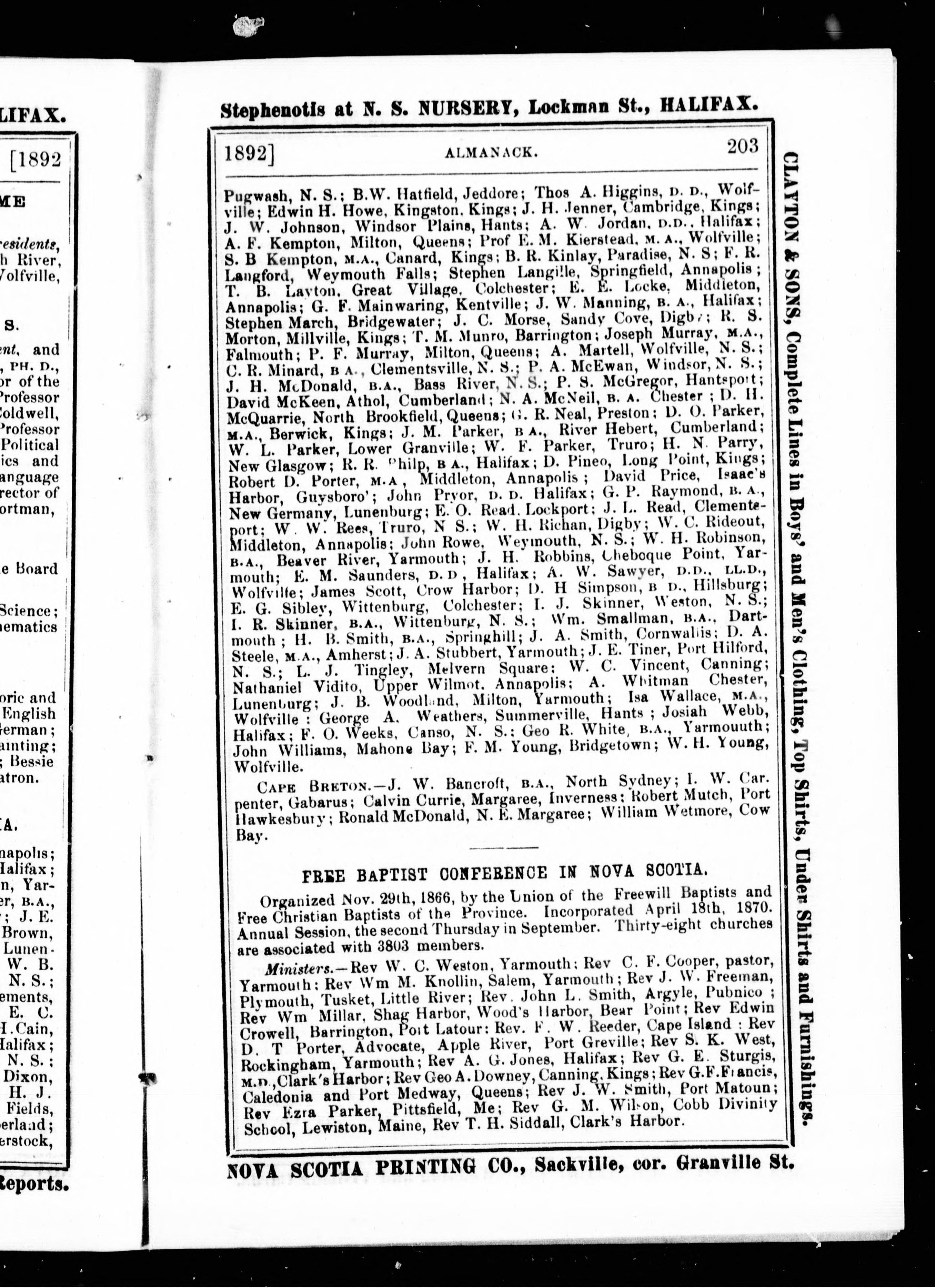 Halifax, N.S.: Published by the Proprietors, McAlpine & Barnes, [1892?]; 251 images, 248 avec recherche en texte intégral