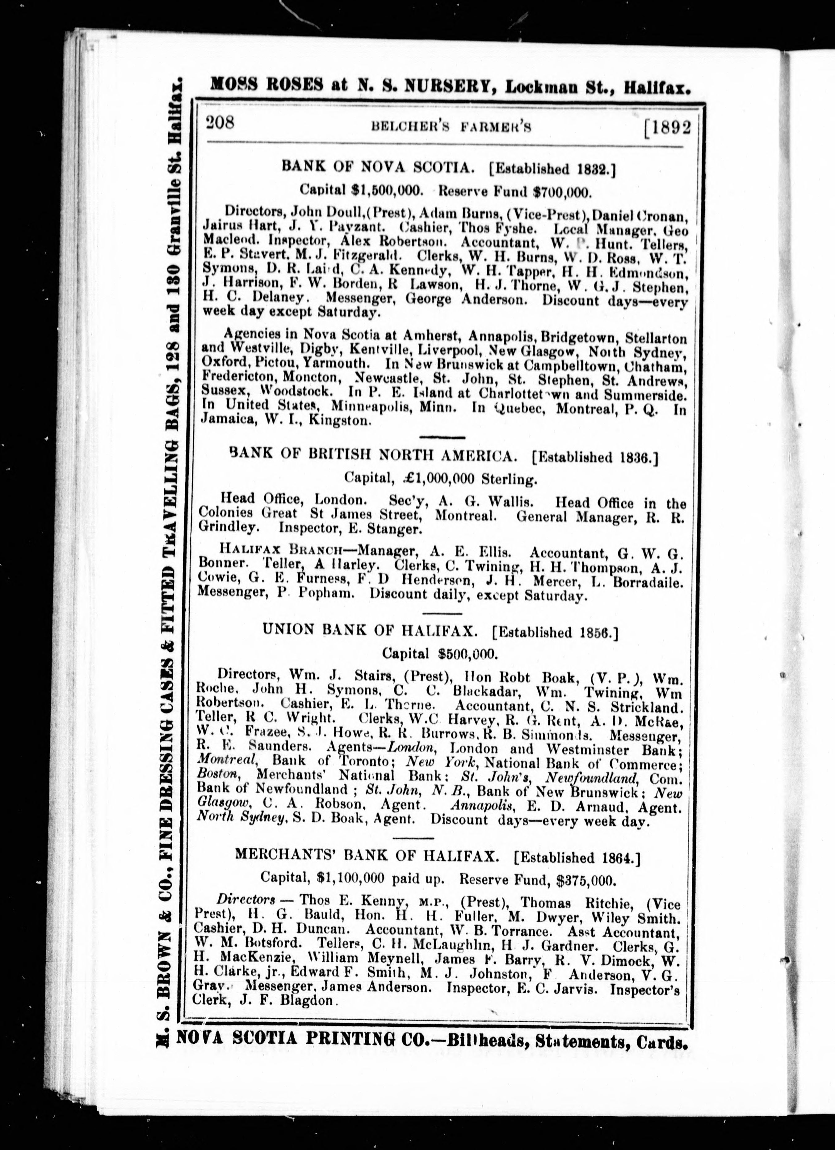 Halifax, N.S.: Published by the Proprietors, McAlpine & Barnes, [1892?]; 251 images, 248 avec recherche en texte intégral