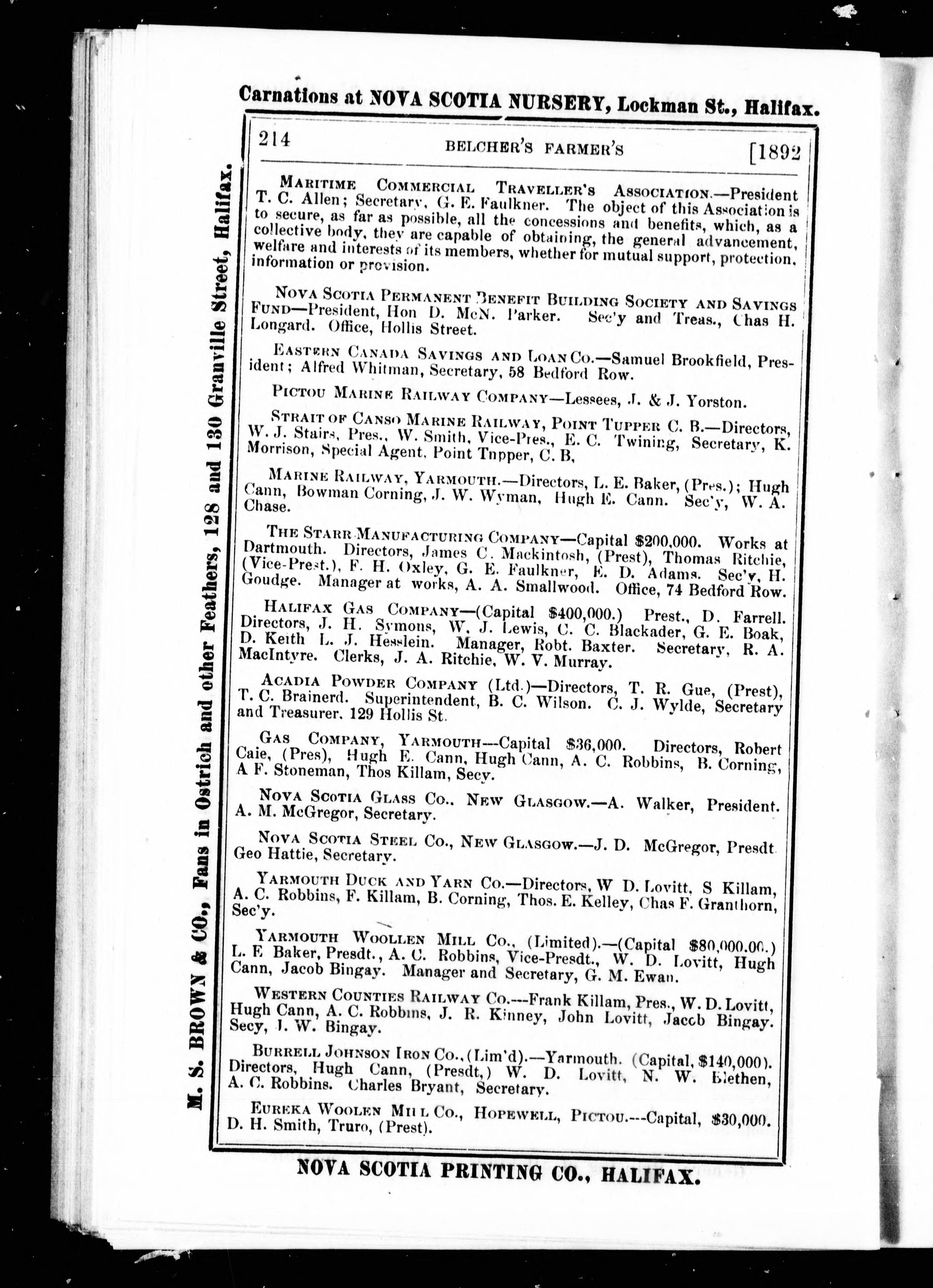 Halifax, N.S.: Published by the Proprietors, McAlpine & Barnes, [1892?]; 251 images, 248 avec recherche en texte intégral
