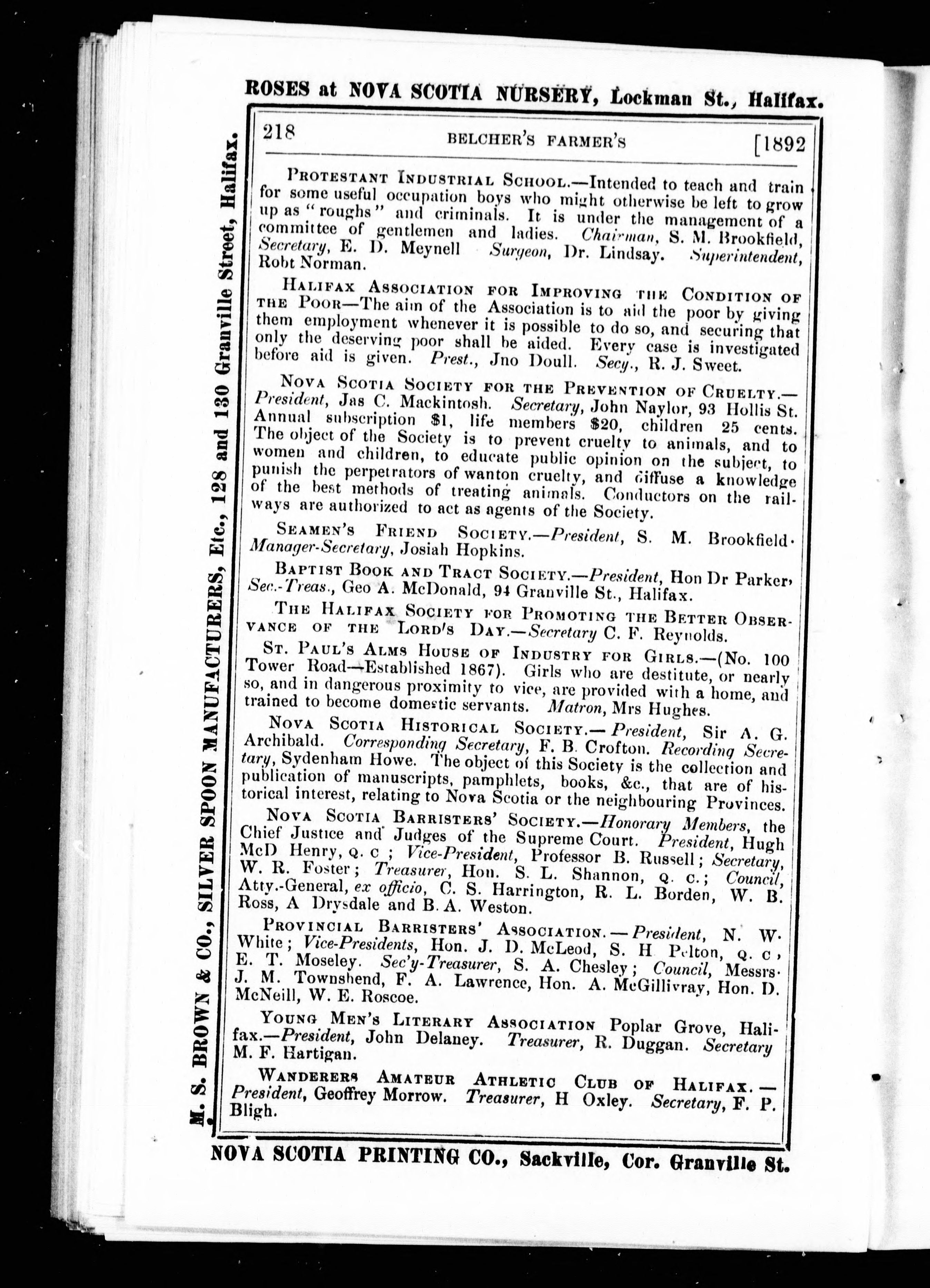 Halifax, N.S.: Published by the Proprietors, McAlpine & Barnes, [1892?]; 251 images, 248 avec recherche en texte intégral