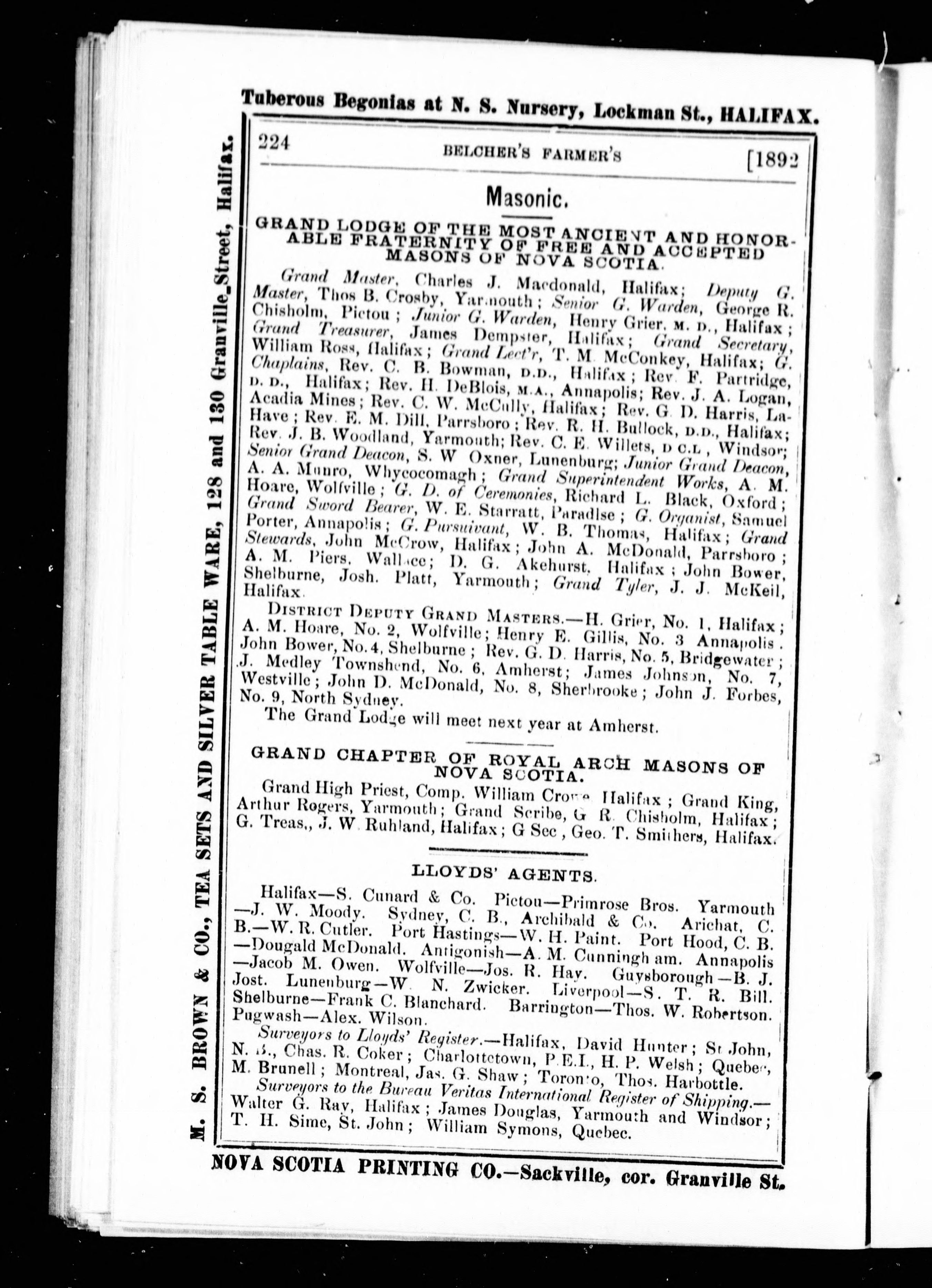 Halifax, N.S.: Published by the Proprietors, McAlpine & Barnes, [1892?]; 251 images, 248 avec recherche en texte intégral