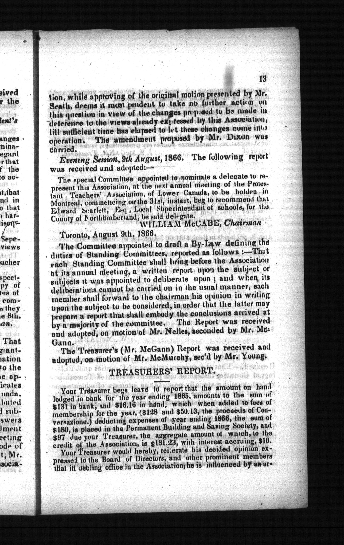 Minutes of the ... annual meeting of the Teachers' Association of Upper Canada : Minutes of the sixth annual meeting of the Teachers' Association of Upper Canada, held in Toronto, 7th, 8th, 9th, and 10th August, 1866 : Sixth (1866)