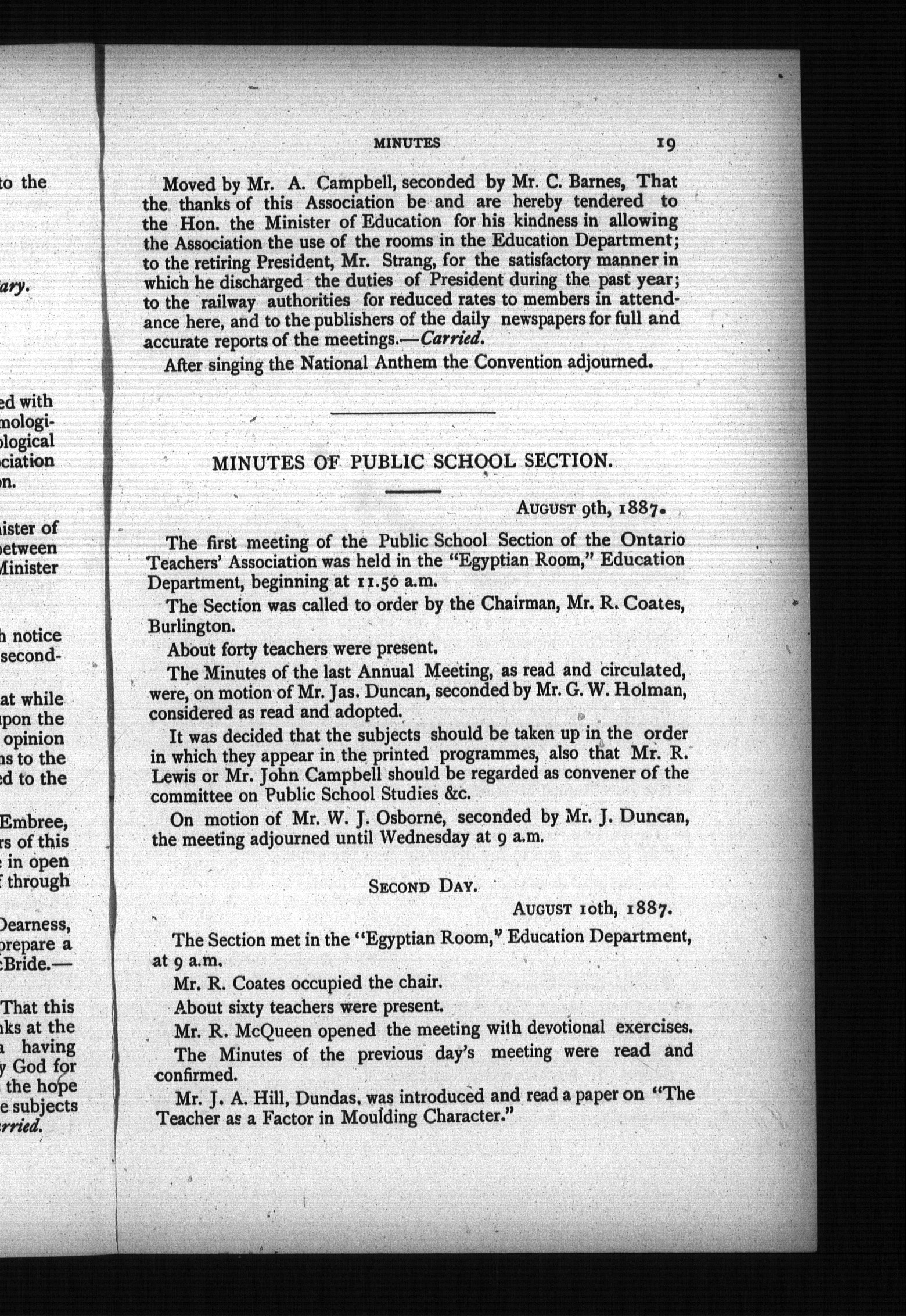 - Minutes of the twenty-seventh annual convention of the Ontario Teachers' Association, held in the Public Hall of the Educaton Department, Toronto, August 9th, 10th, and 11th, 1887 : Twenty-Seventh (1887)