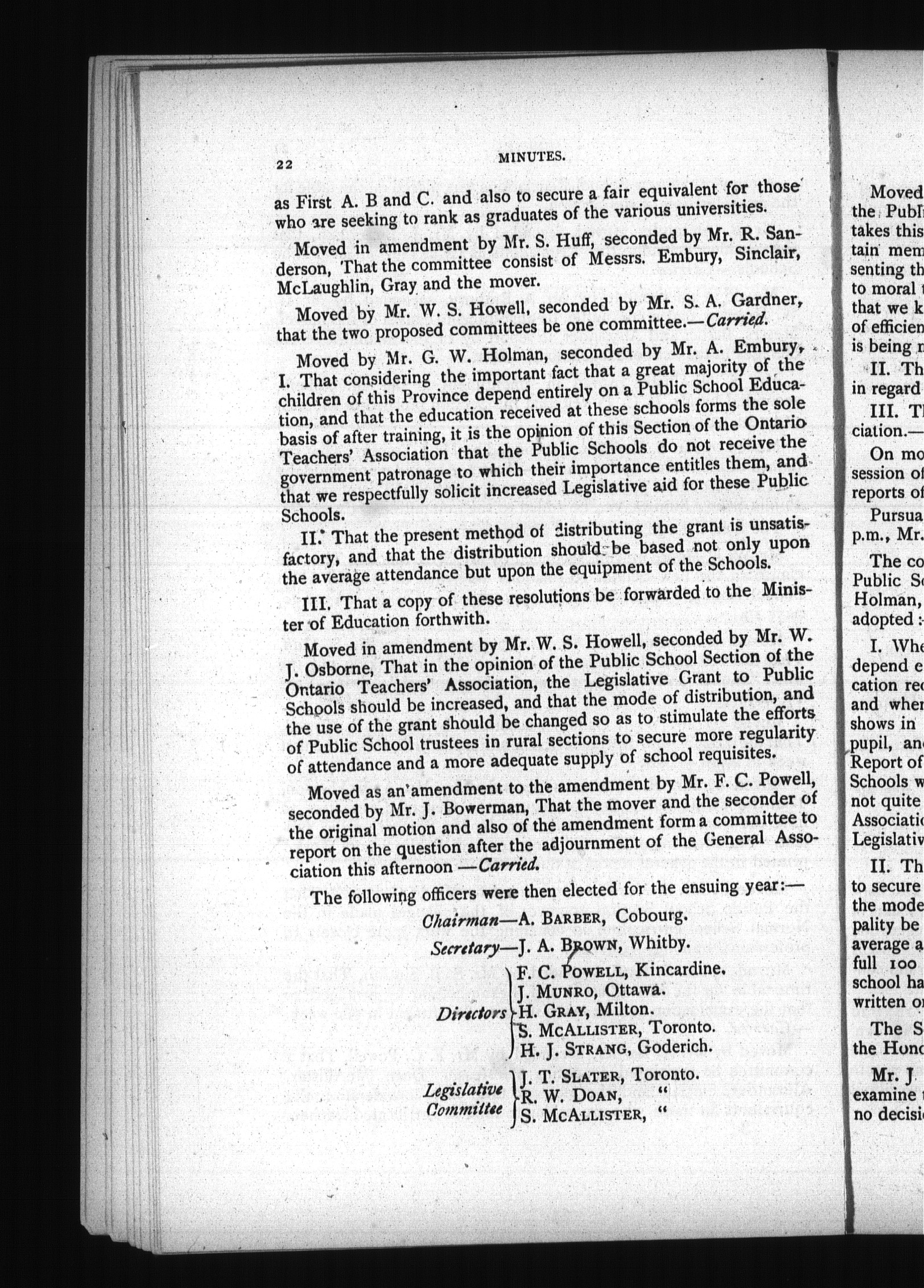 - Minutes of the twenty-seventh annual convention of the Ontario Teachers' Association, held in the Public Hall of the Educaton Department, Toronto, August 9th, 10th, and 11th, 1887 : Twenty-Seventh (1887)