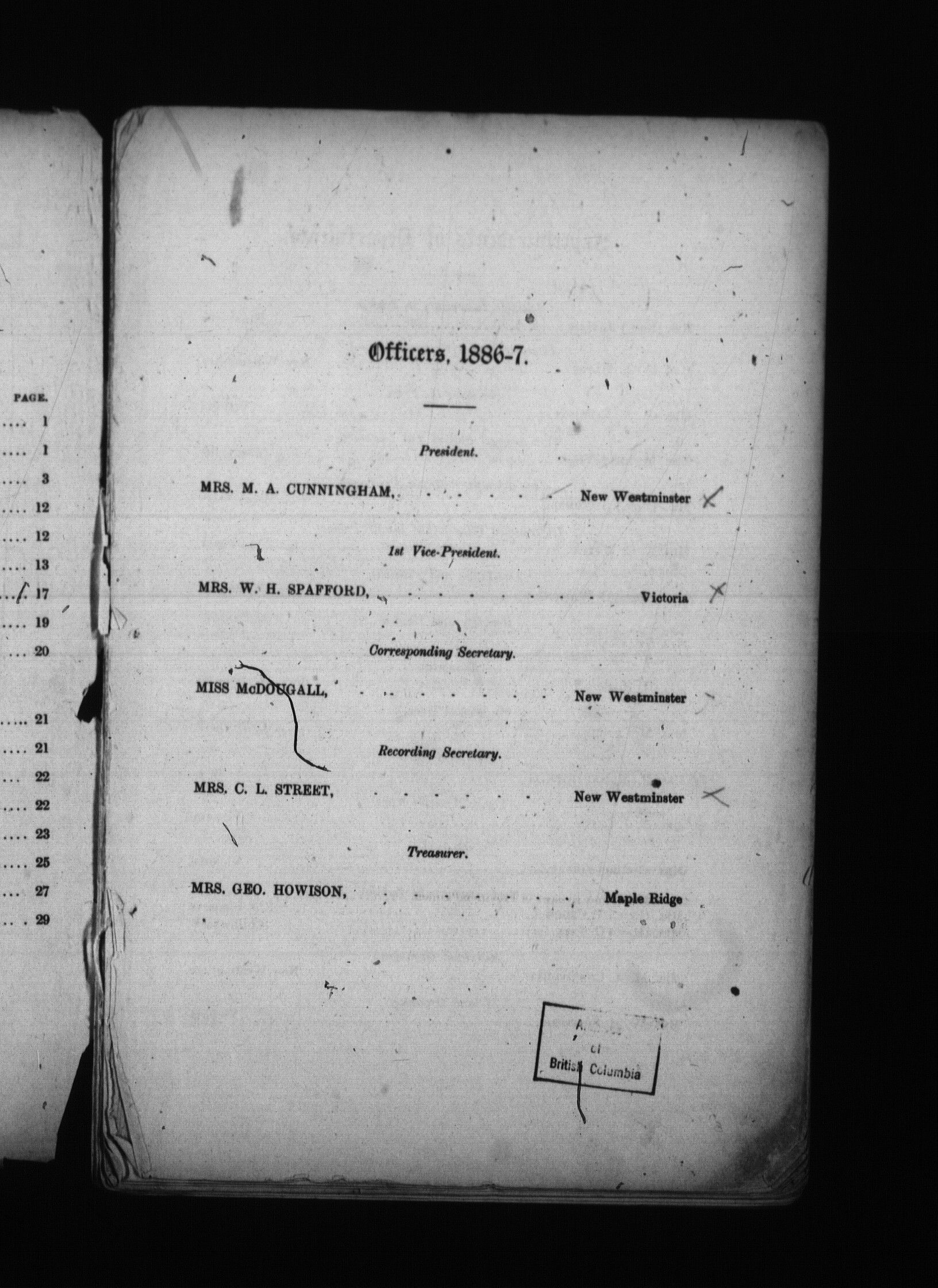 - [Victoria, B.C.?] : [Woman's Christian Temperance Union of British Columbia], 1887