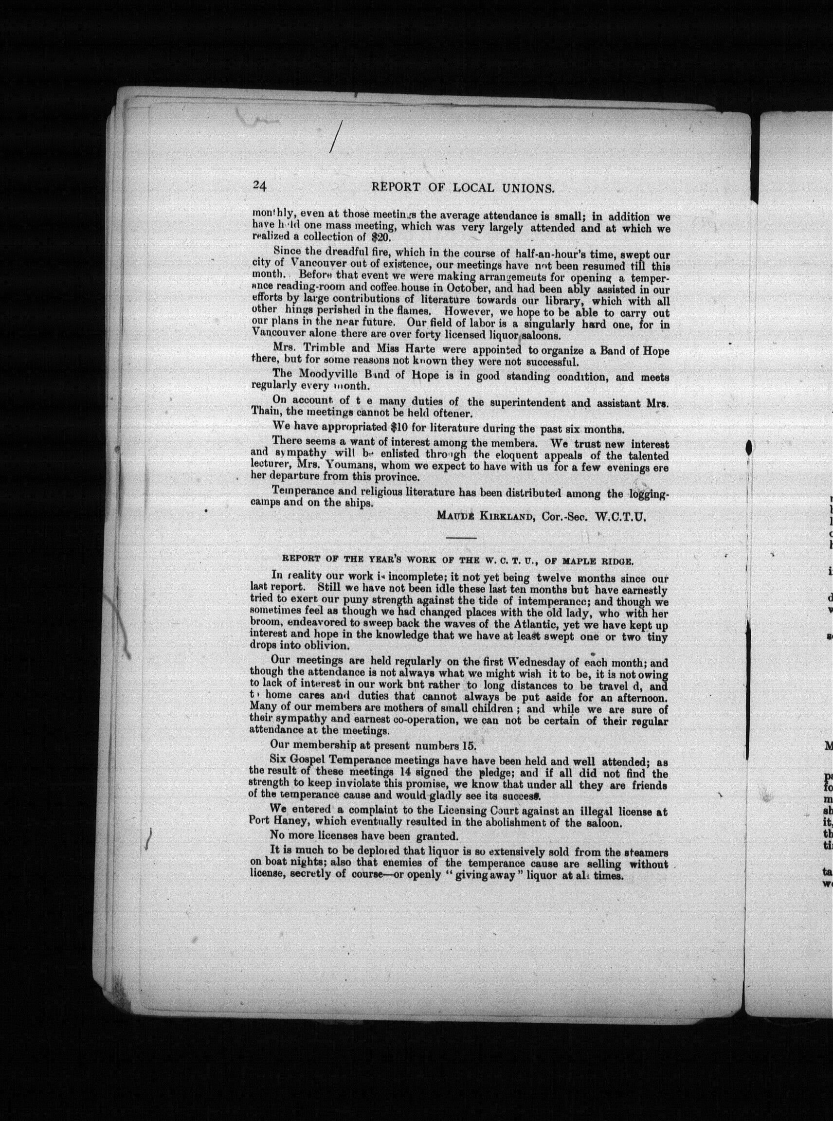 [Victoria, B.C.?] : [Woman's Christian Temperance Union of British Columbia], 1887; 37 images avec recherche en texte intégral
