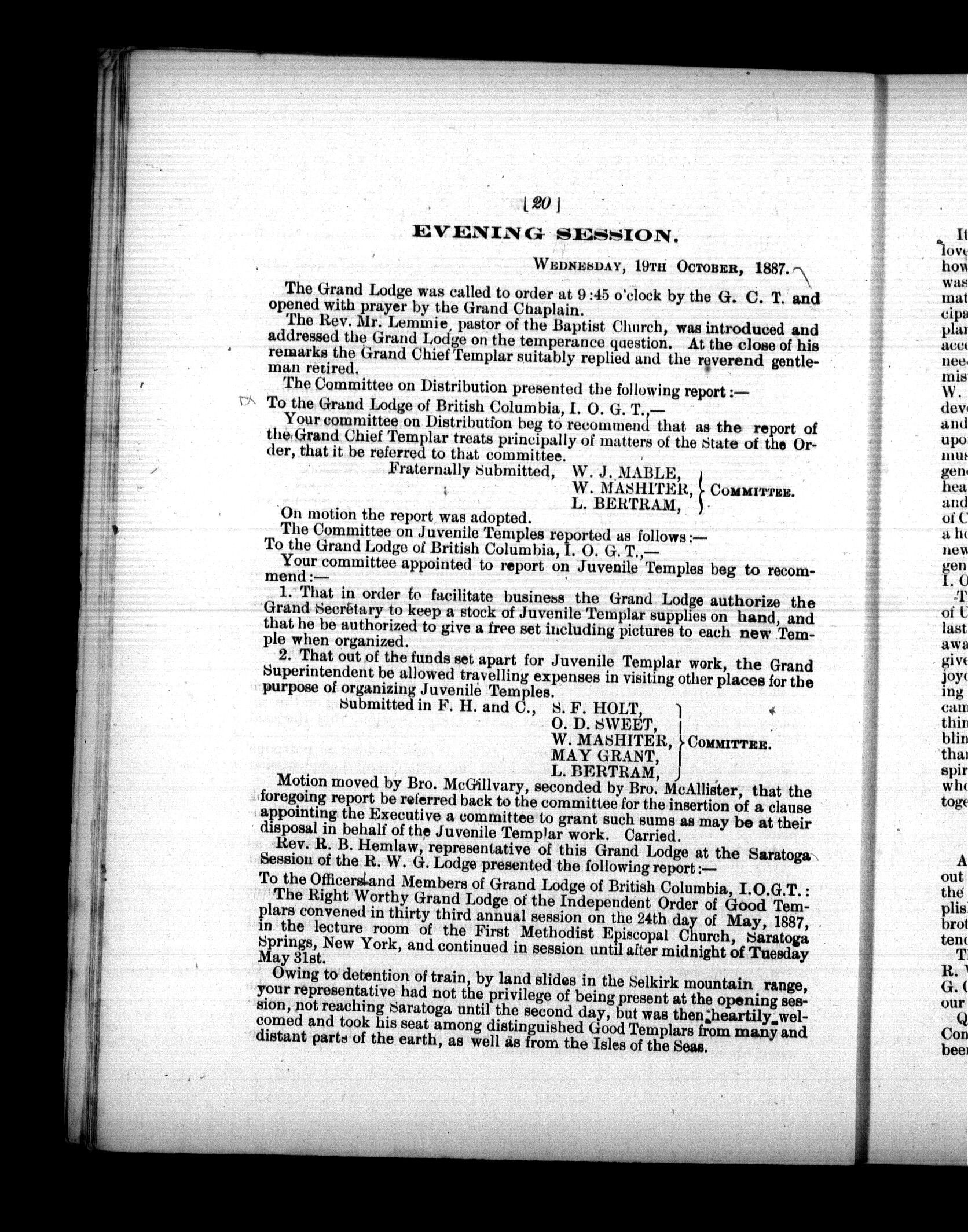 [British Columbia] : [Grand Lodge of British Columbia, I.O.G.T.], 1888; 42 images, 41 avec recherche en texte intégral