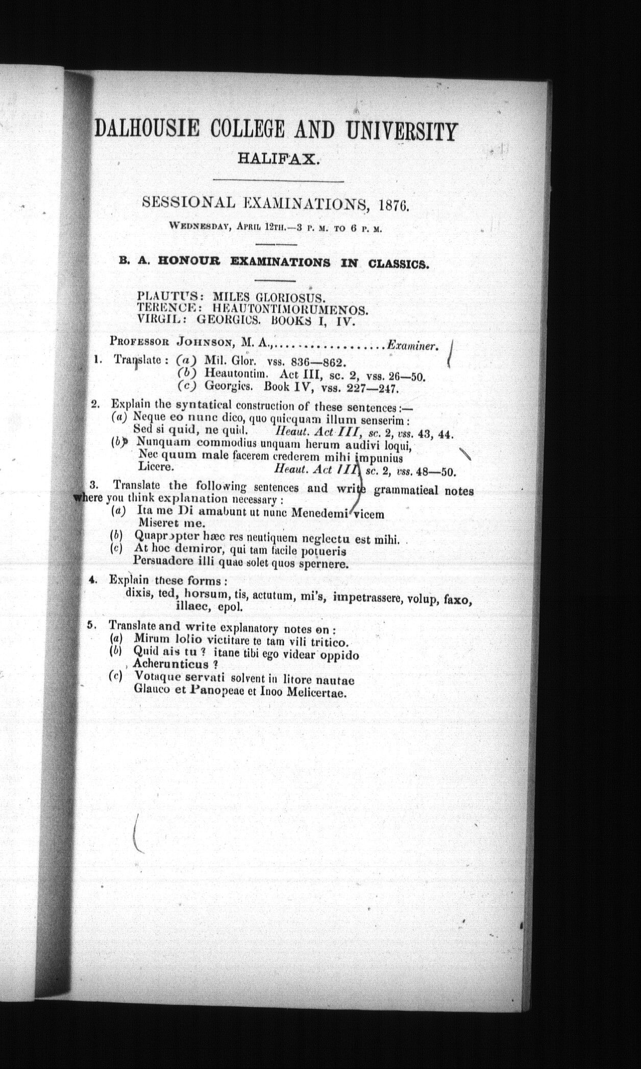 [Halifax, N.S.] : [Dalhousie University], 1876
