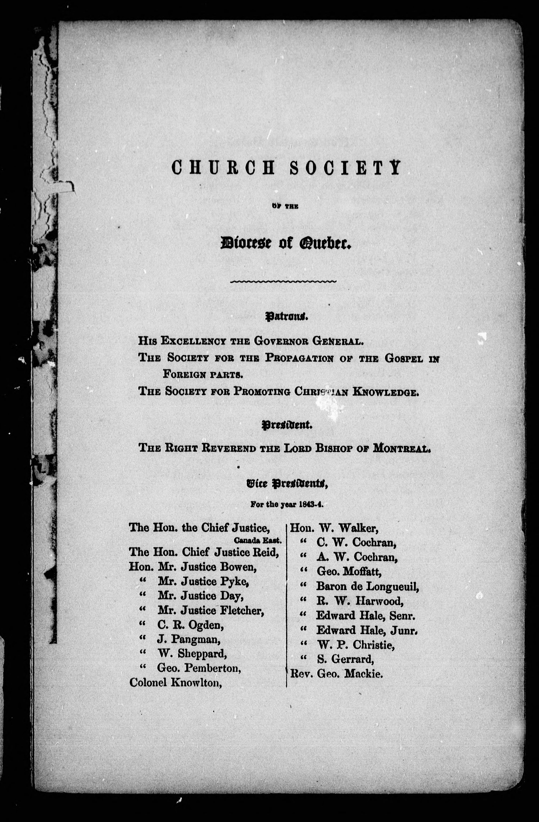 [Québec?]: [Church Society of the Diocese of Quebec], [1843?]; 54 images, 51 avec recherche en texte intégral