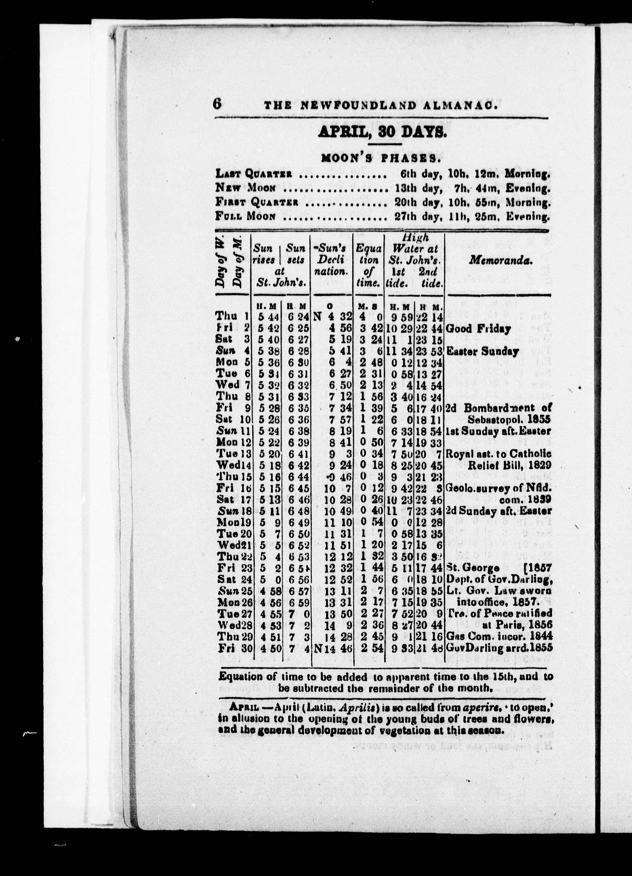 The Newfoundland almanac (calculated expressly for this Island) for the year of our Lord ... : The Newfoundland almanac, for the year of our Lord 1858 : 1858
