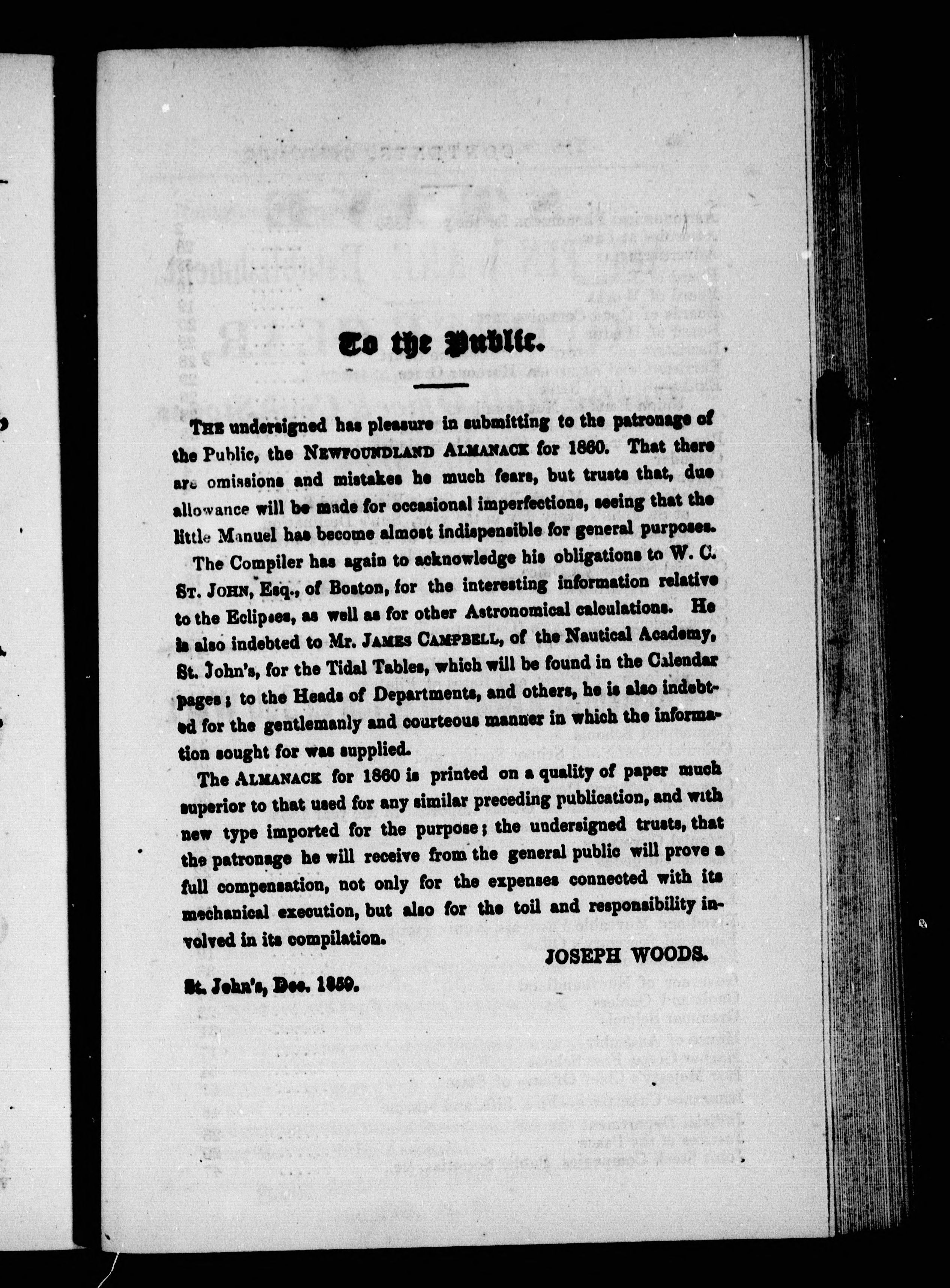 The Newfoundland almanac (calculated expressly for this Island) for the year of our Lord ... : The Newfoundland almanac, for the year of our Lord 1860 : 1860