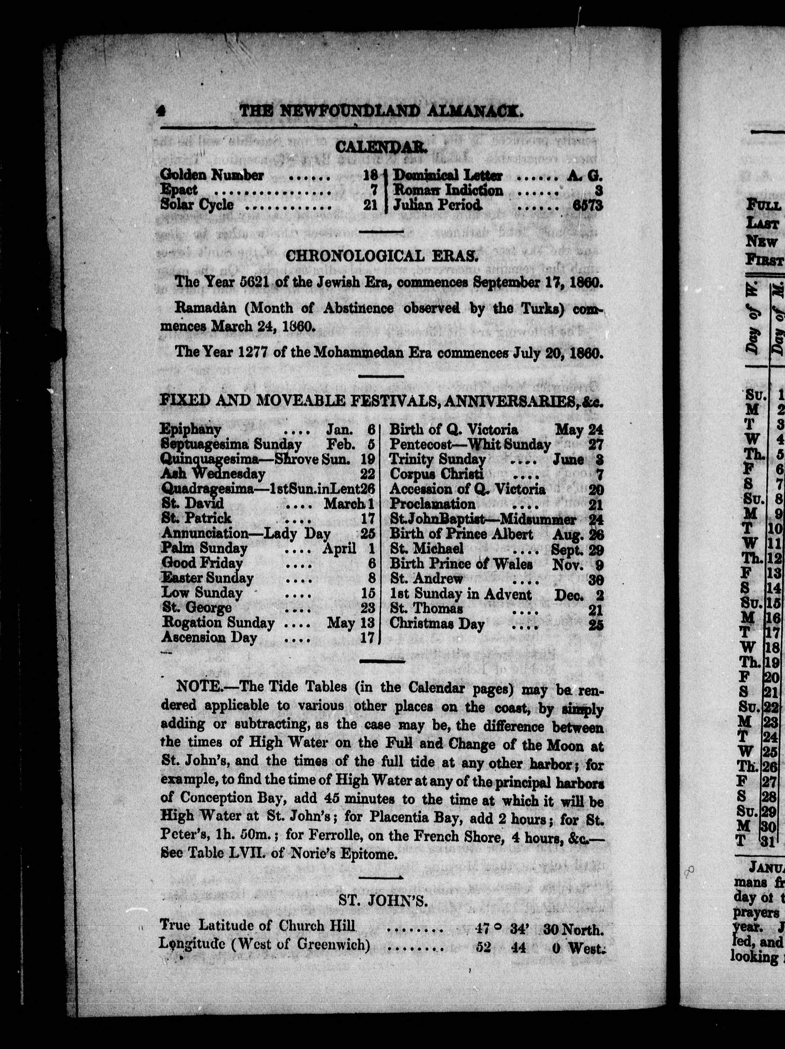 The Newfoundland almanac (calculated expressly for this Island) for the year of our Lord ... : The Newfoundland almanac, for the year of our Lord 1860 : 1860