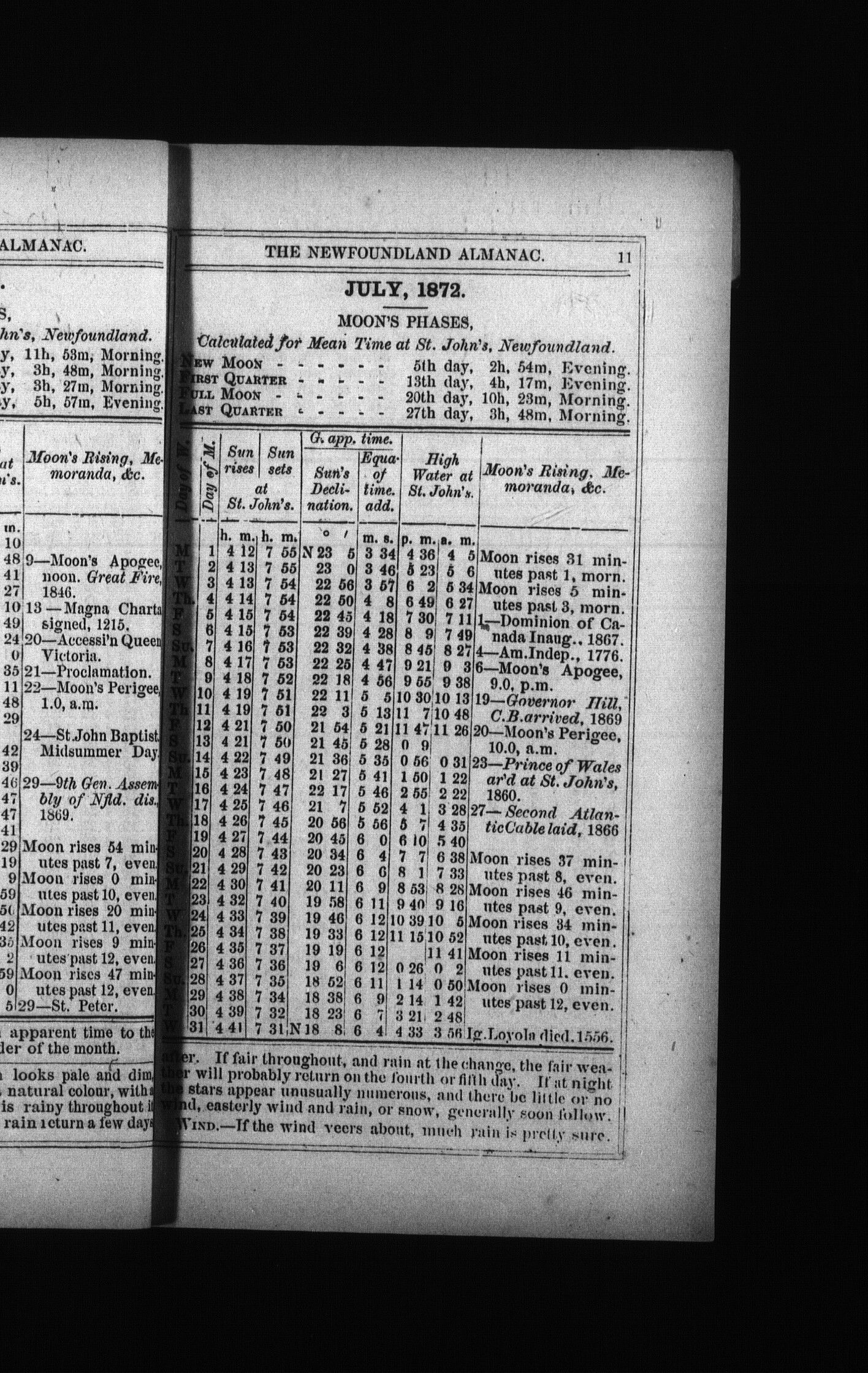 The Newfoundland almanac (calculated expressly for this Island) for the year of our Lord ... : The Newfoundland almanac, for the year of our Lord 1872 : 1872