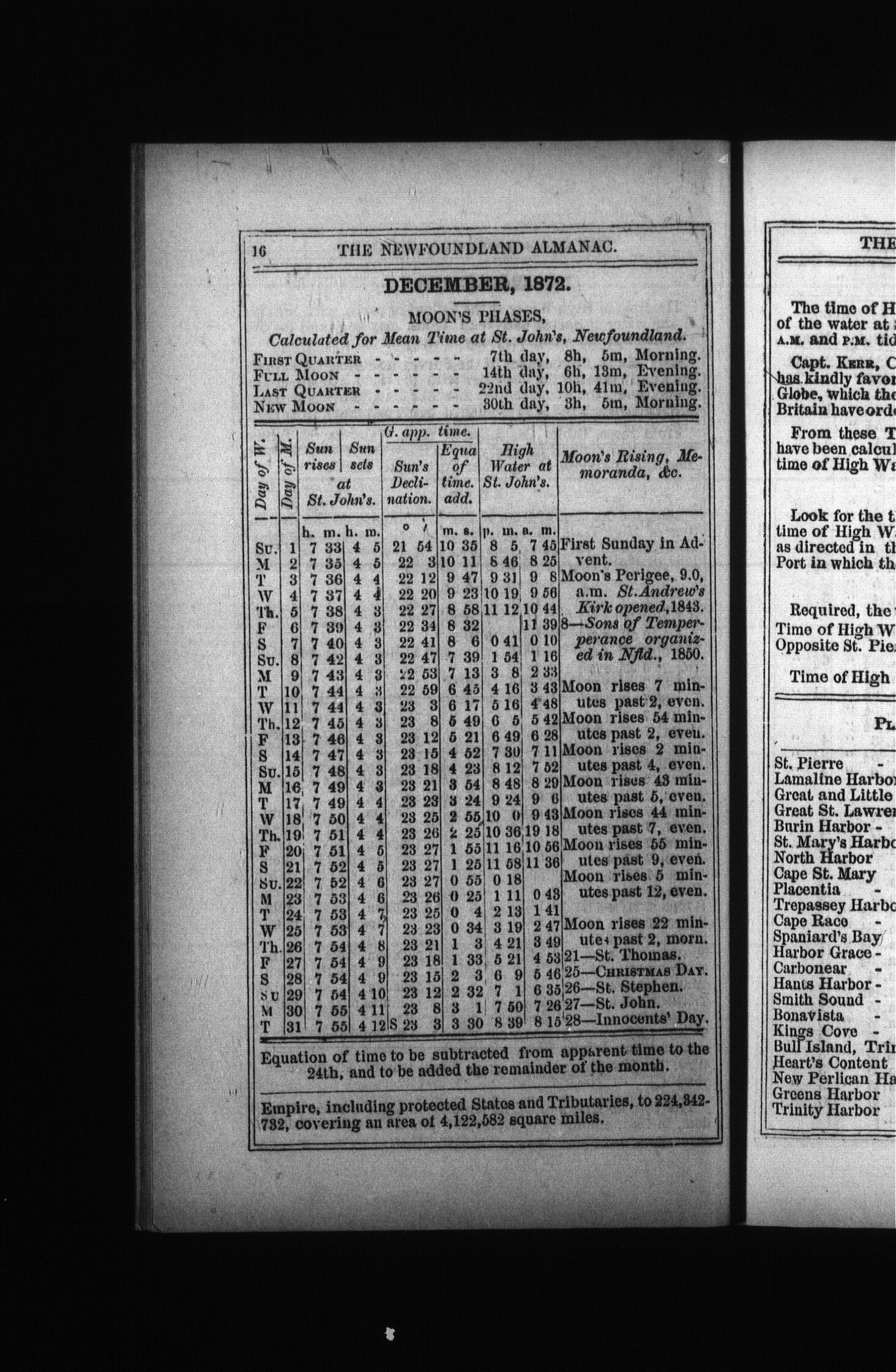 The Newfoundland almanac (calculated expressly for this Island) for the year of our Lord ... : The Newfoundland almanac, for the year of our Lord 1872 : 1872