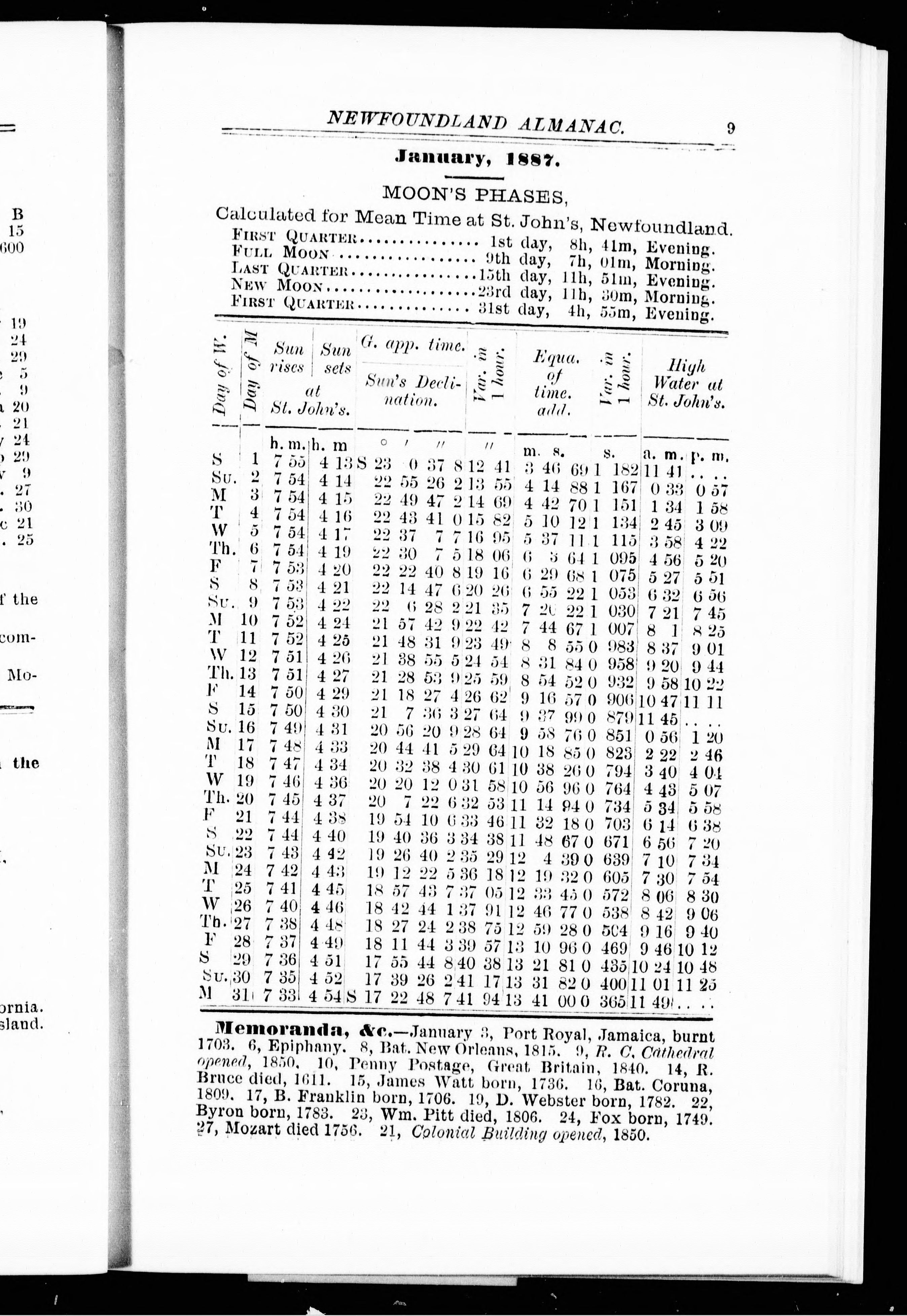 - The Newfoundland almanac, for the year of our Lord 1887 : 1887
