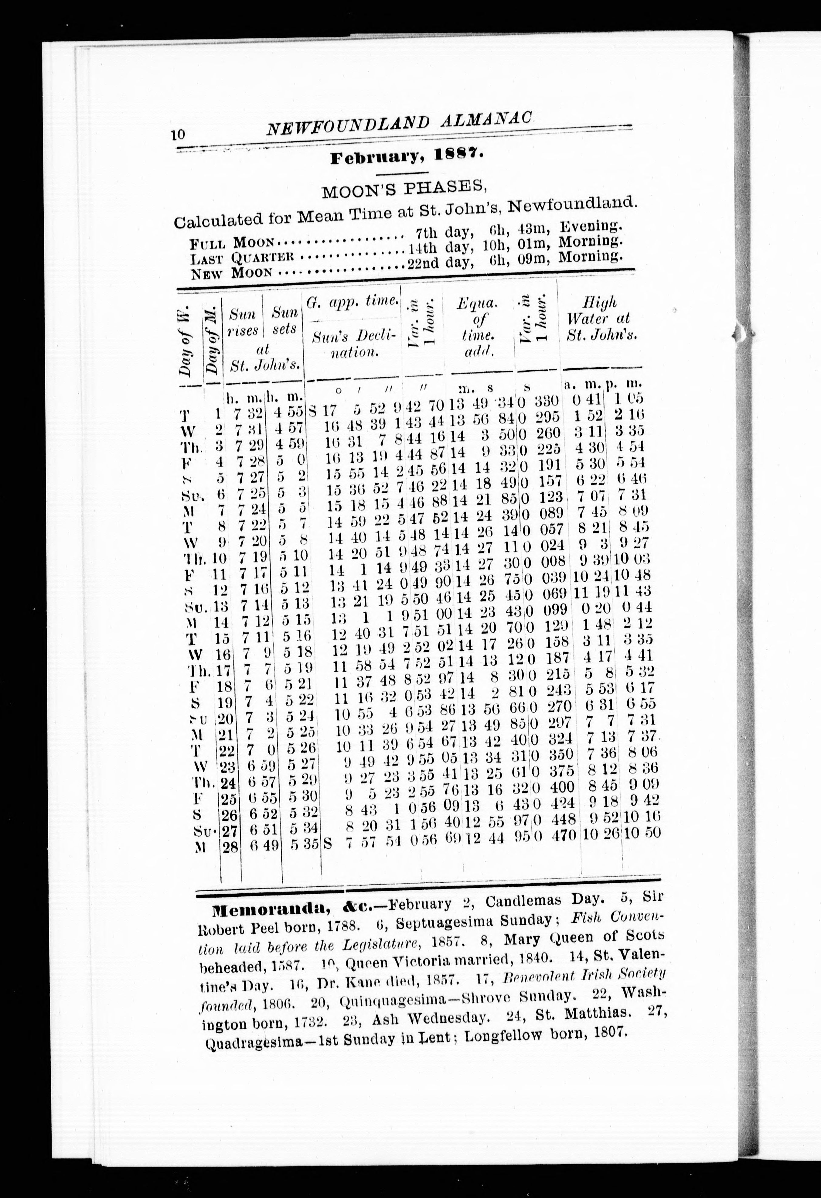 - The Newfoundland almanac, for the year of our Lord 1887 : 1887