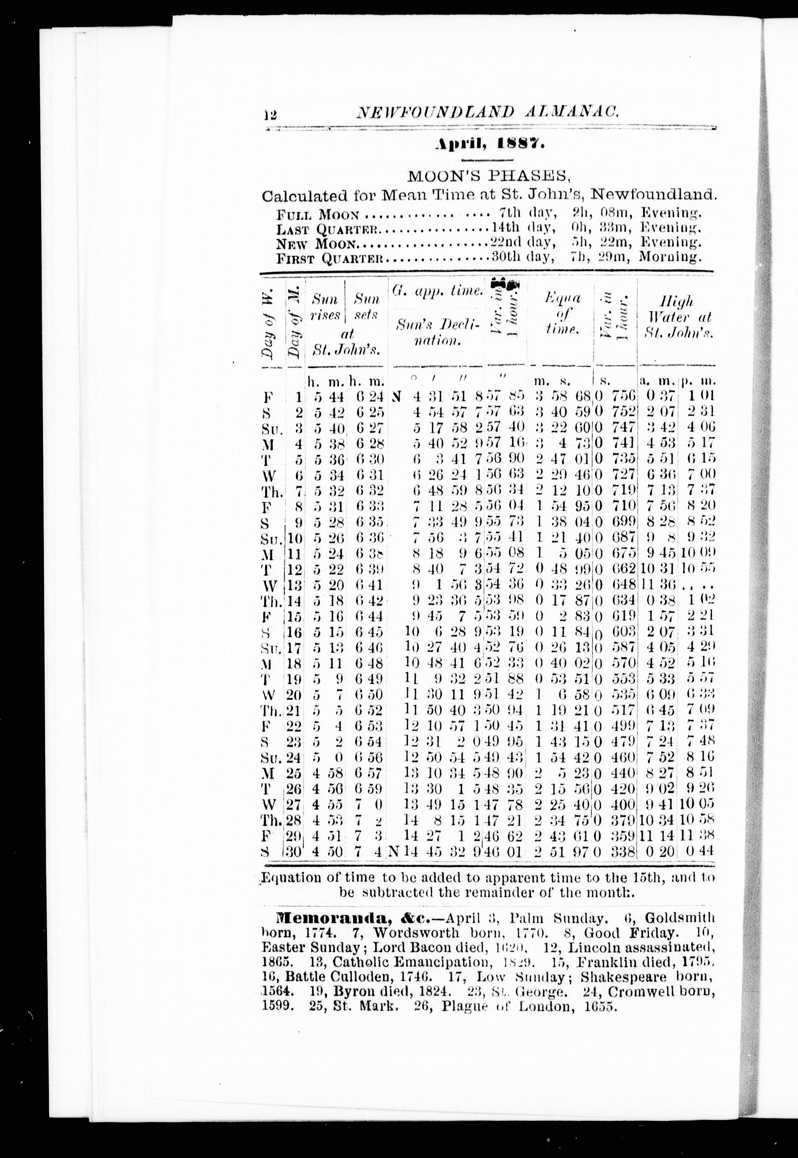 - The Newfoundland almanac, for the year of our Lord 1887 : 1887