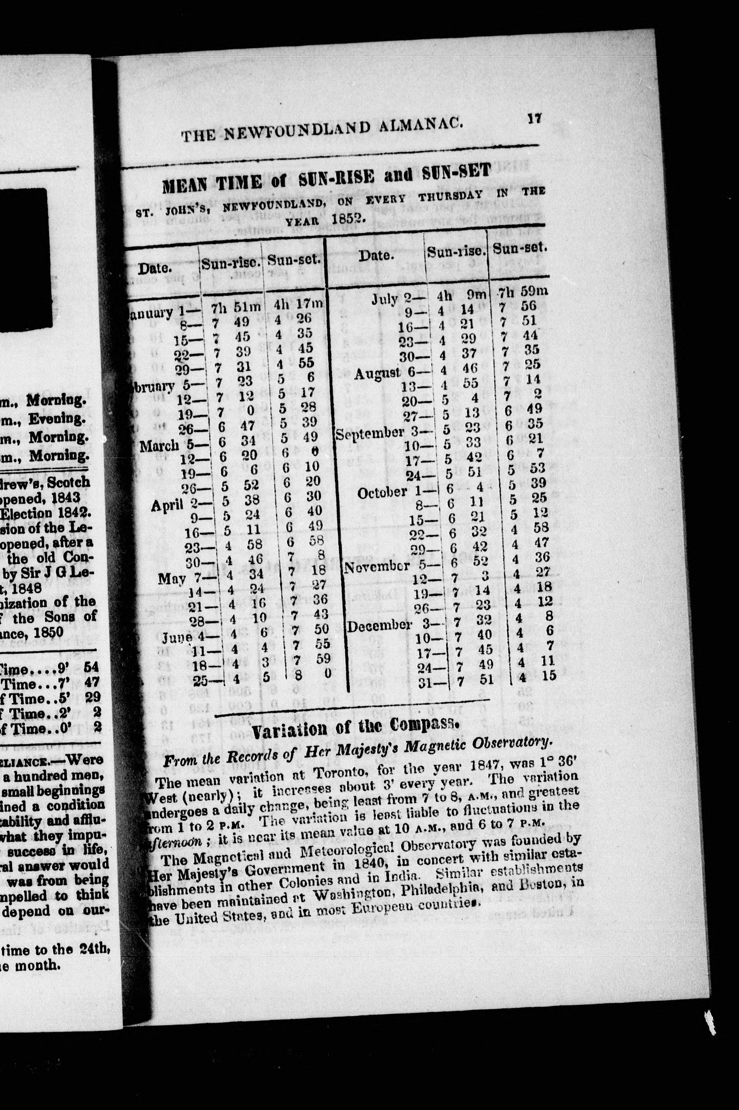 The Newfoundland almanac (calculated expressly for this Island) for the year of our Lord ... : The Newfoundland almanac for the year of our Lord 1852 : 1852