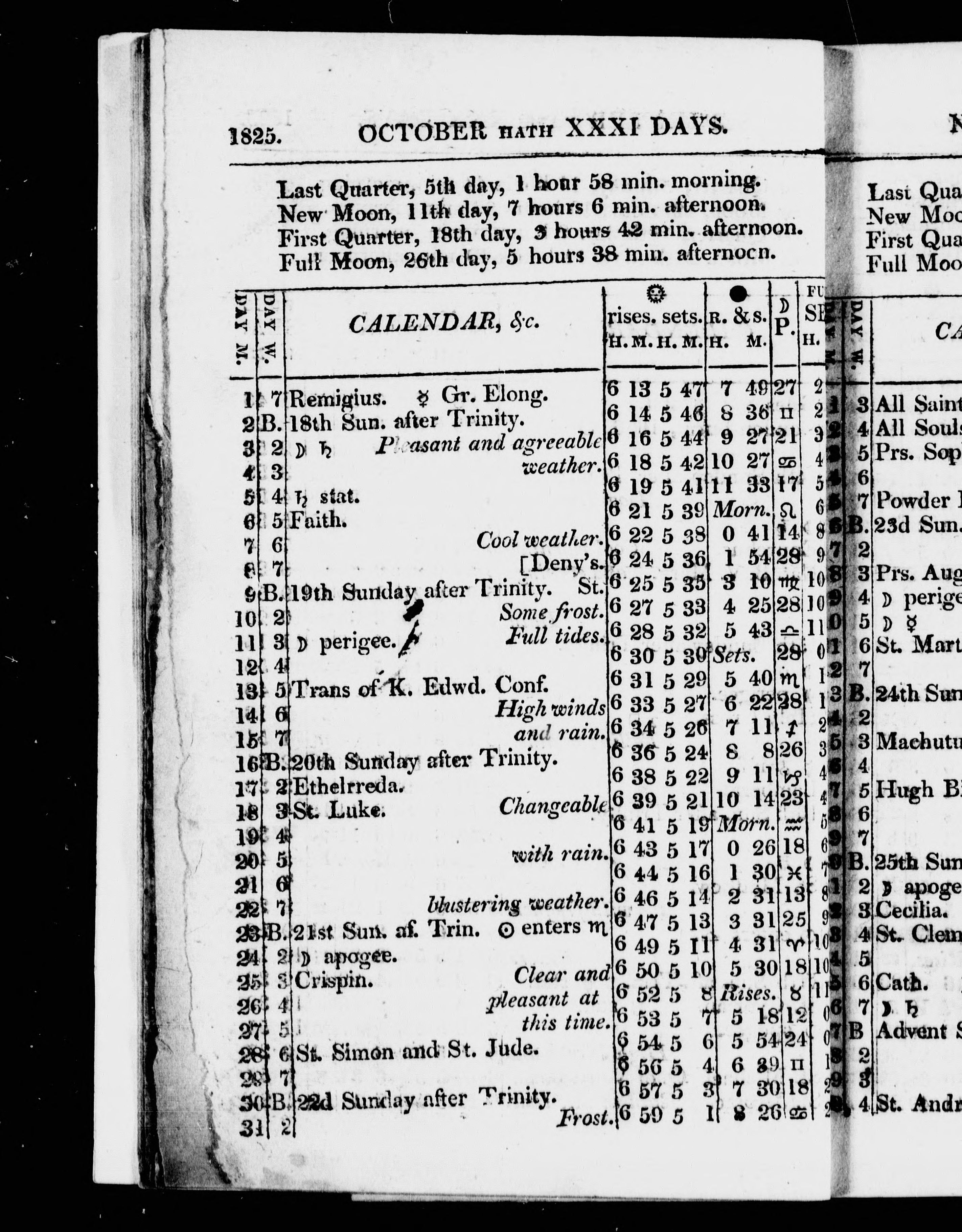- An Almanack, for the year of our Lord, 1825, being the first after bissextile or leap year, calculated for the meridian of Saint John, N.B. : 1825