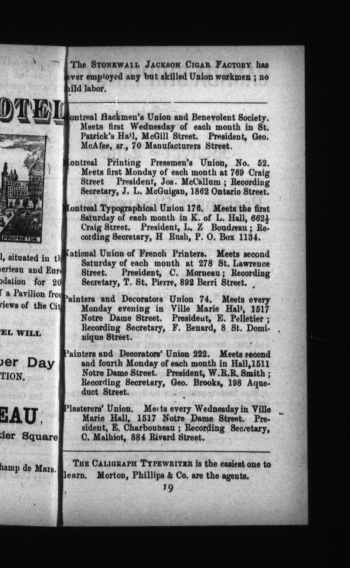 Labor directory : : Labor directory : giving the times and places of meeting and addresses of secretaries of all the labor organizations in Montreal : 1893