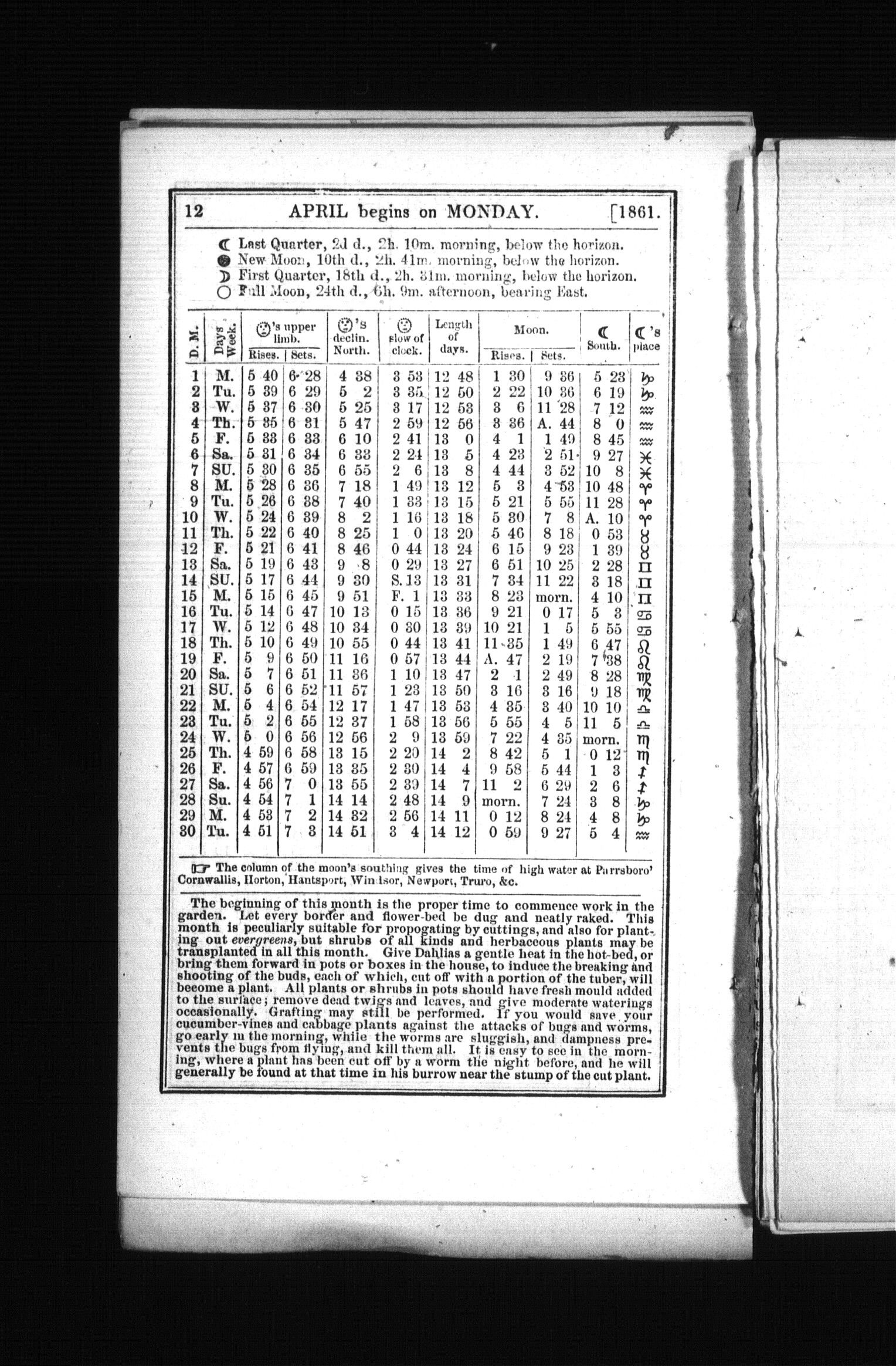 - Belcher's farmer's almanack for the year of our Lord 1861 : 1861