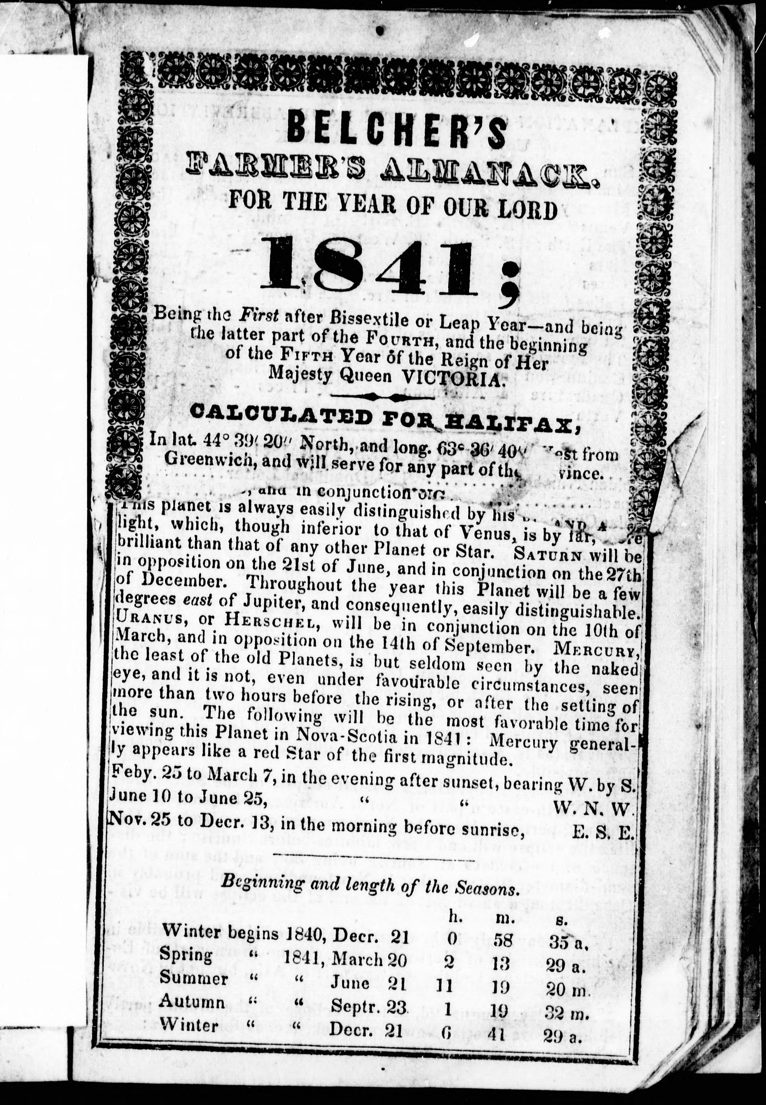 Belcher's farmer's almanack for the year of our Lord 1841 : 1841