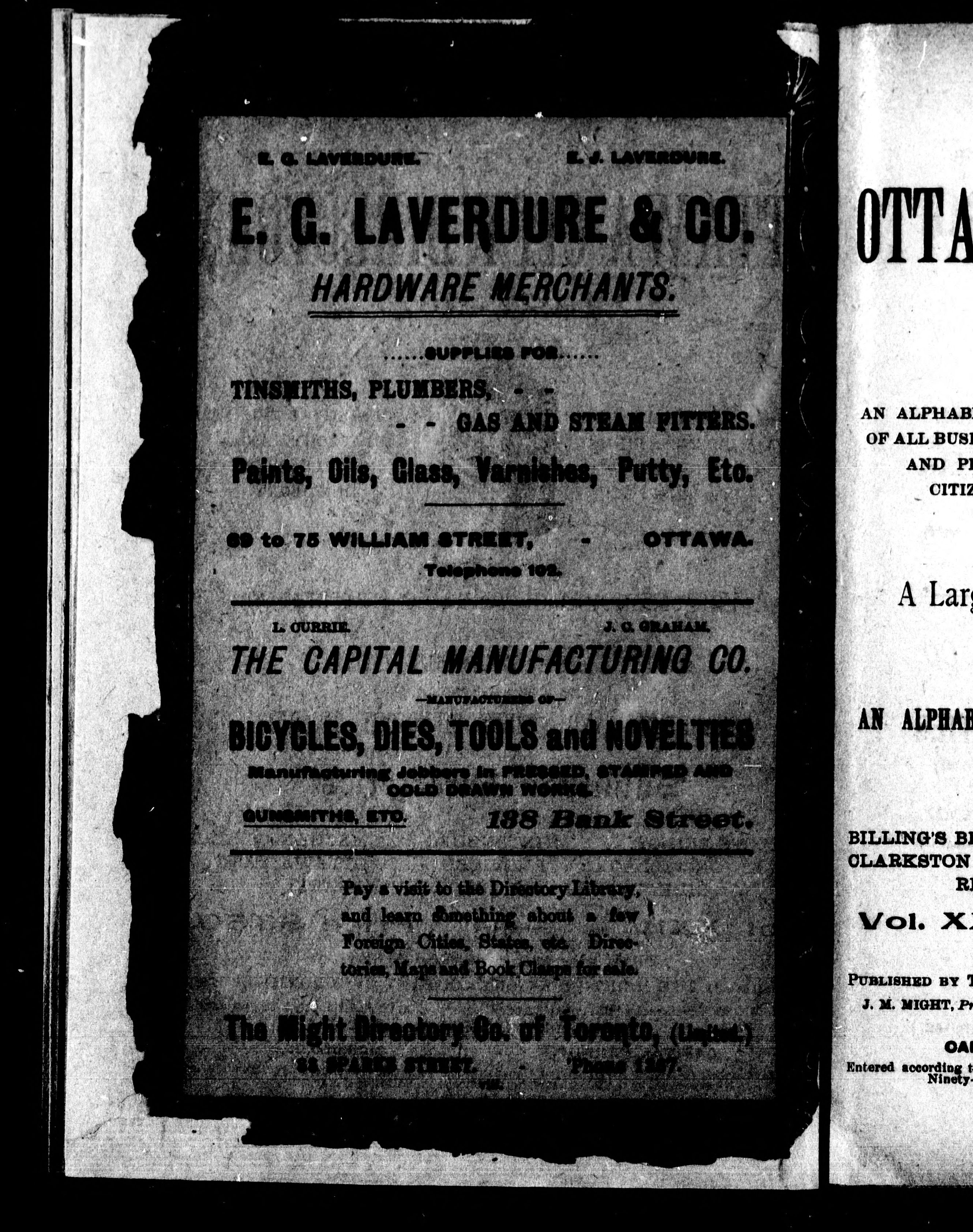 Ottawa: Published by the Might Directory Company of Toronto (Ltd.), [1897?]; 584 images, 574 avec recherche en texte intégral