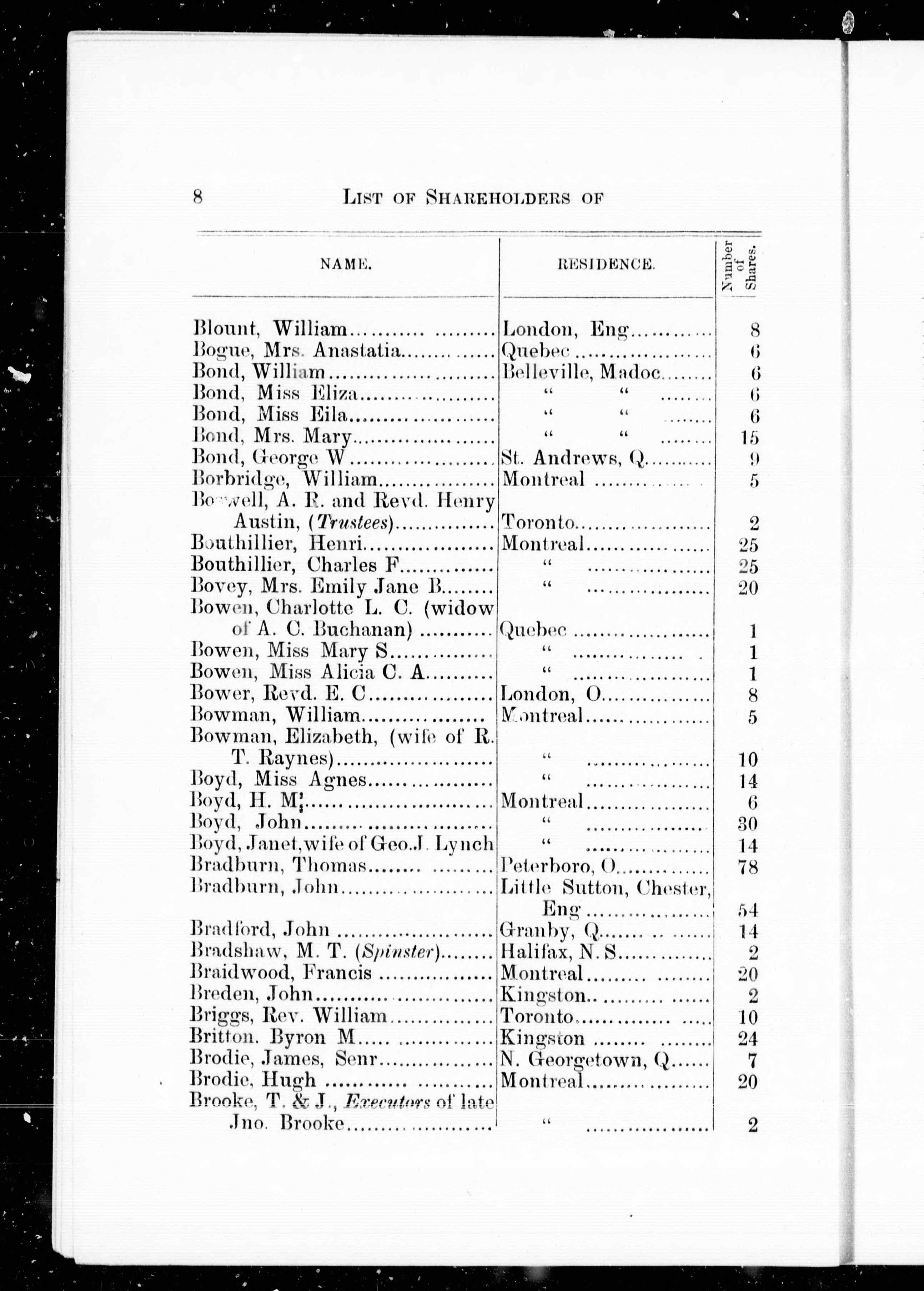 - List of shareholders of the Merchants' Bank of Canada, on 1st June, 1882 : 1882