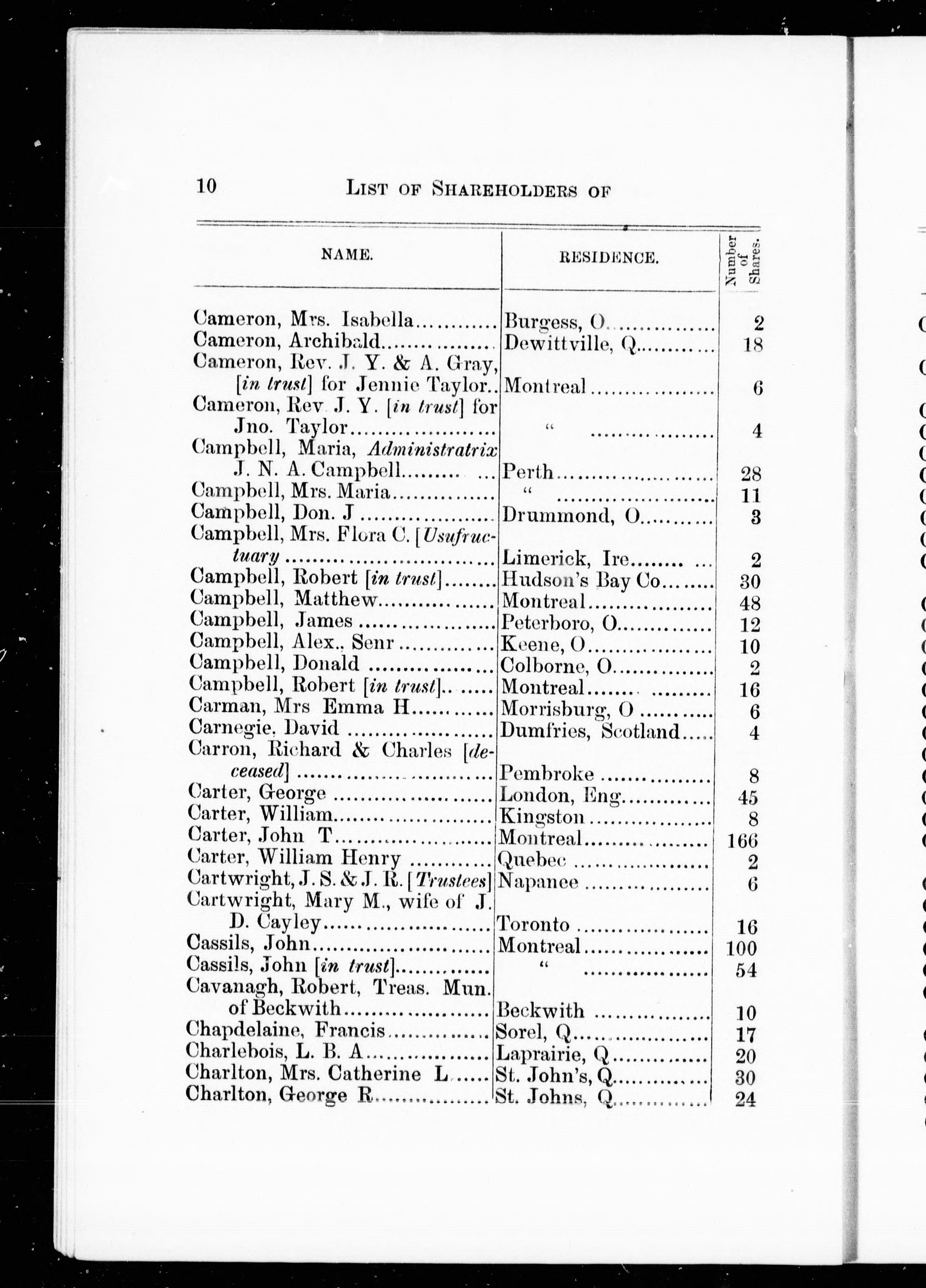 - List of shareholders of the Merchants' Bank of Canada, on 1st June, 1882 : 1882