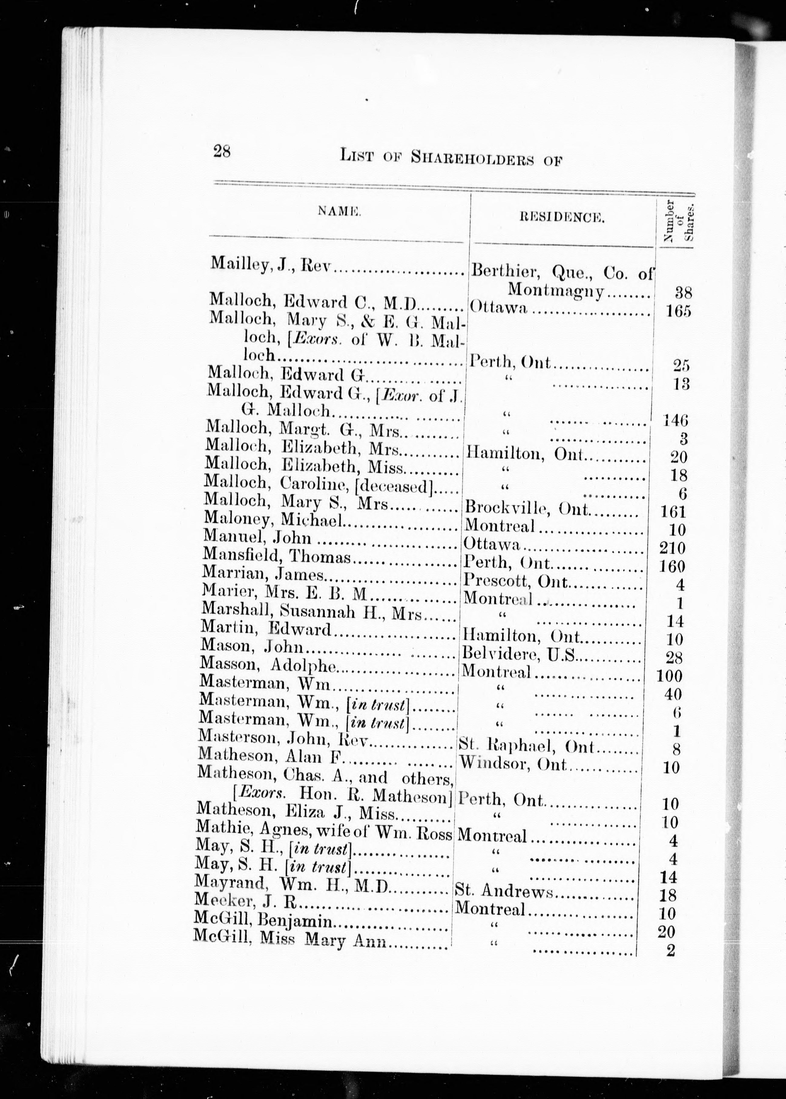 - List of shareholders of the Merchants' Bank of Canada, on 1st June, 1882 : 1882