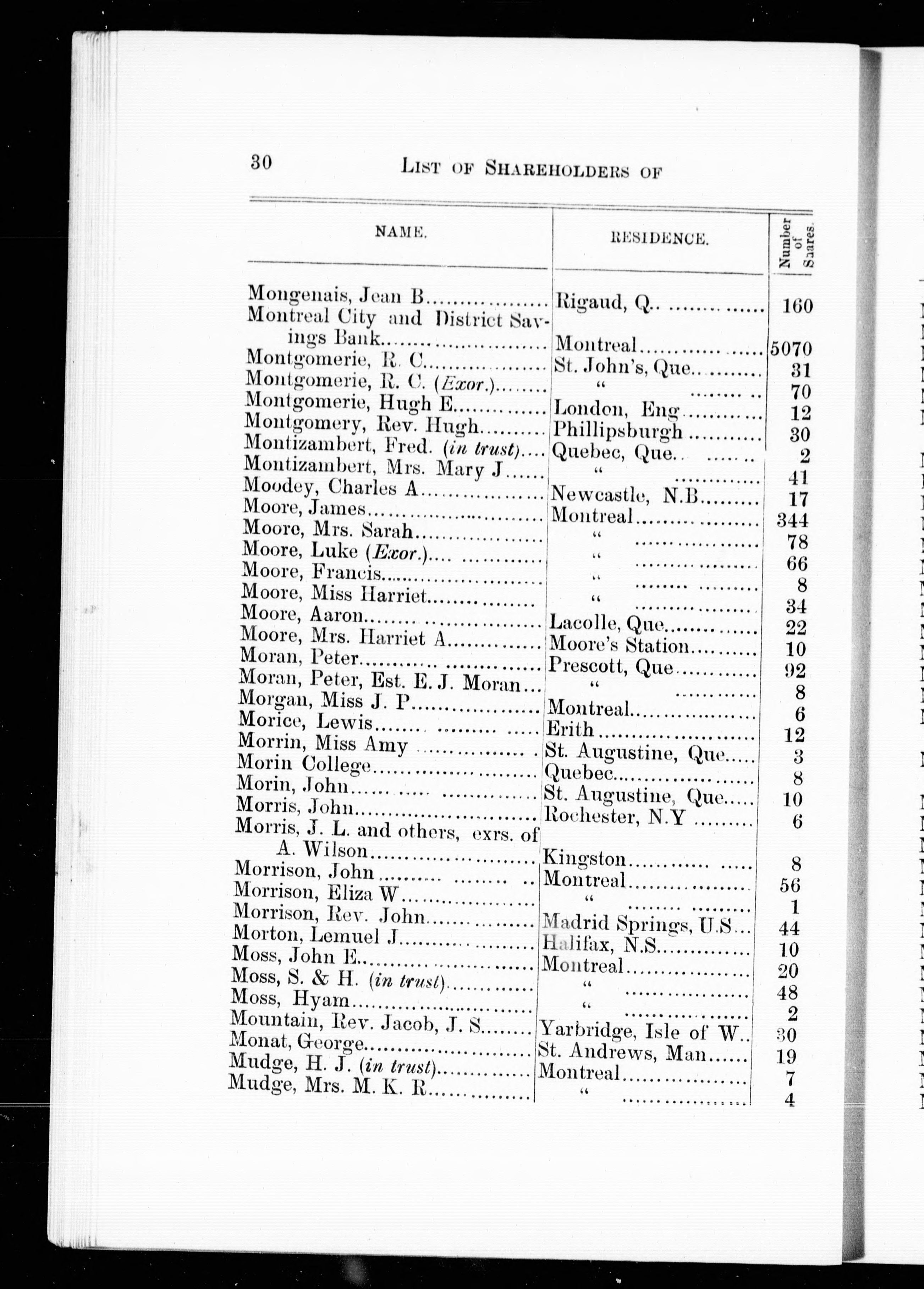 - List of shareholders of the Merchants' Bank of Canada, on 1st June, 1882 : 1882