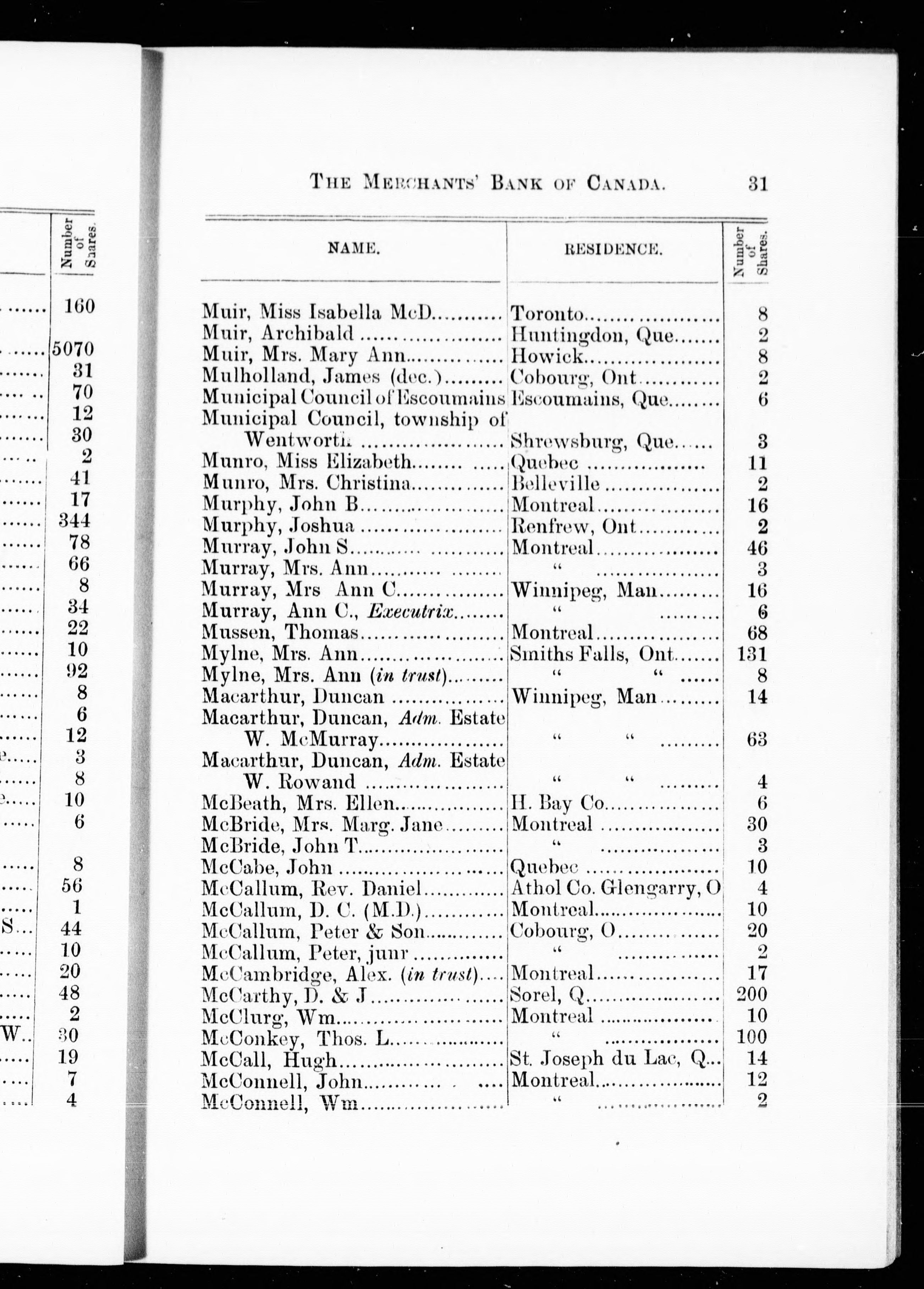 List of shareholders of the Merchants' Bank of Canada, on 1st June, 1882 : 1882
