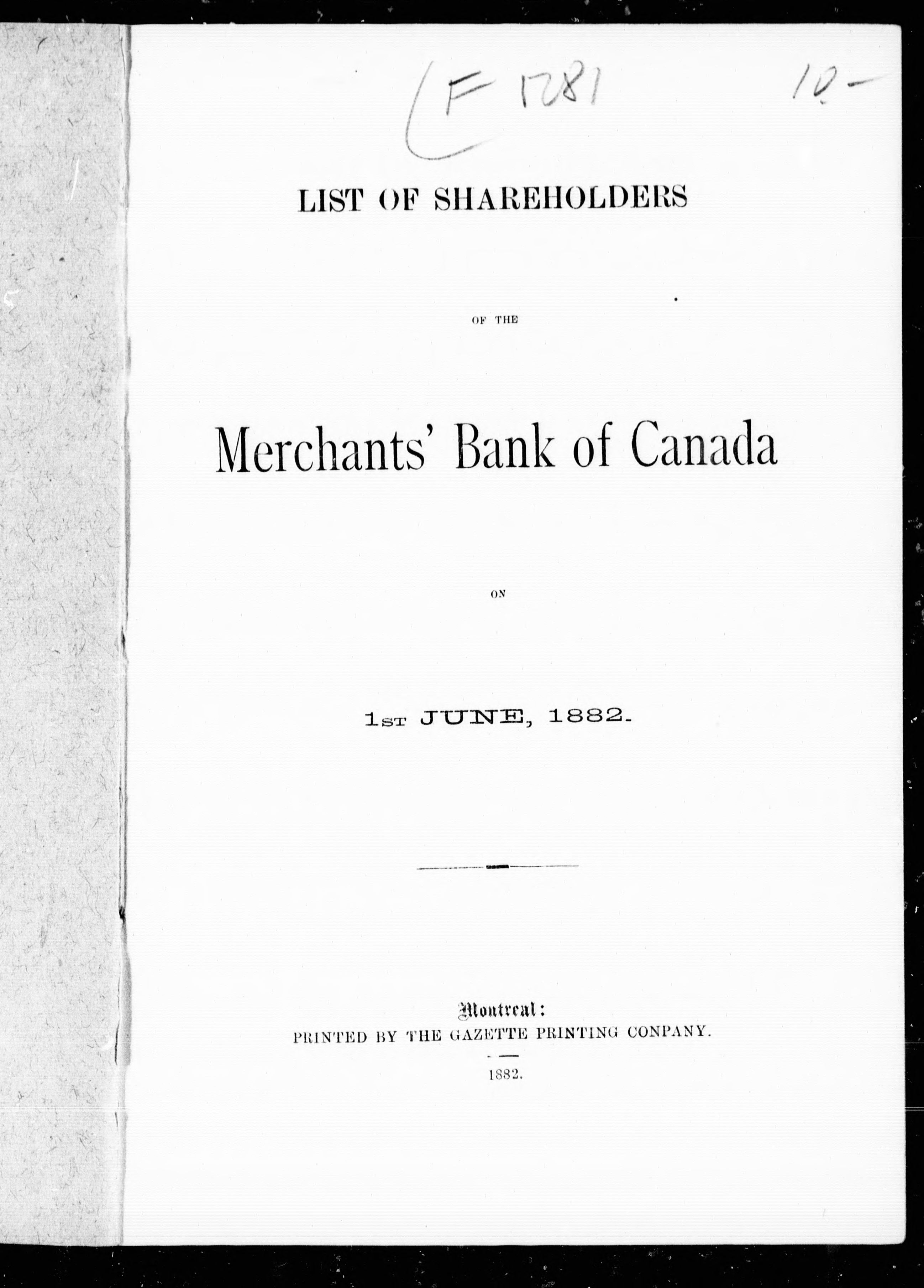 - [Montréal?]: [Merchants' Bank of Canada], 1882