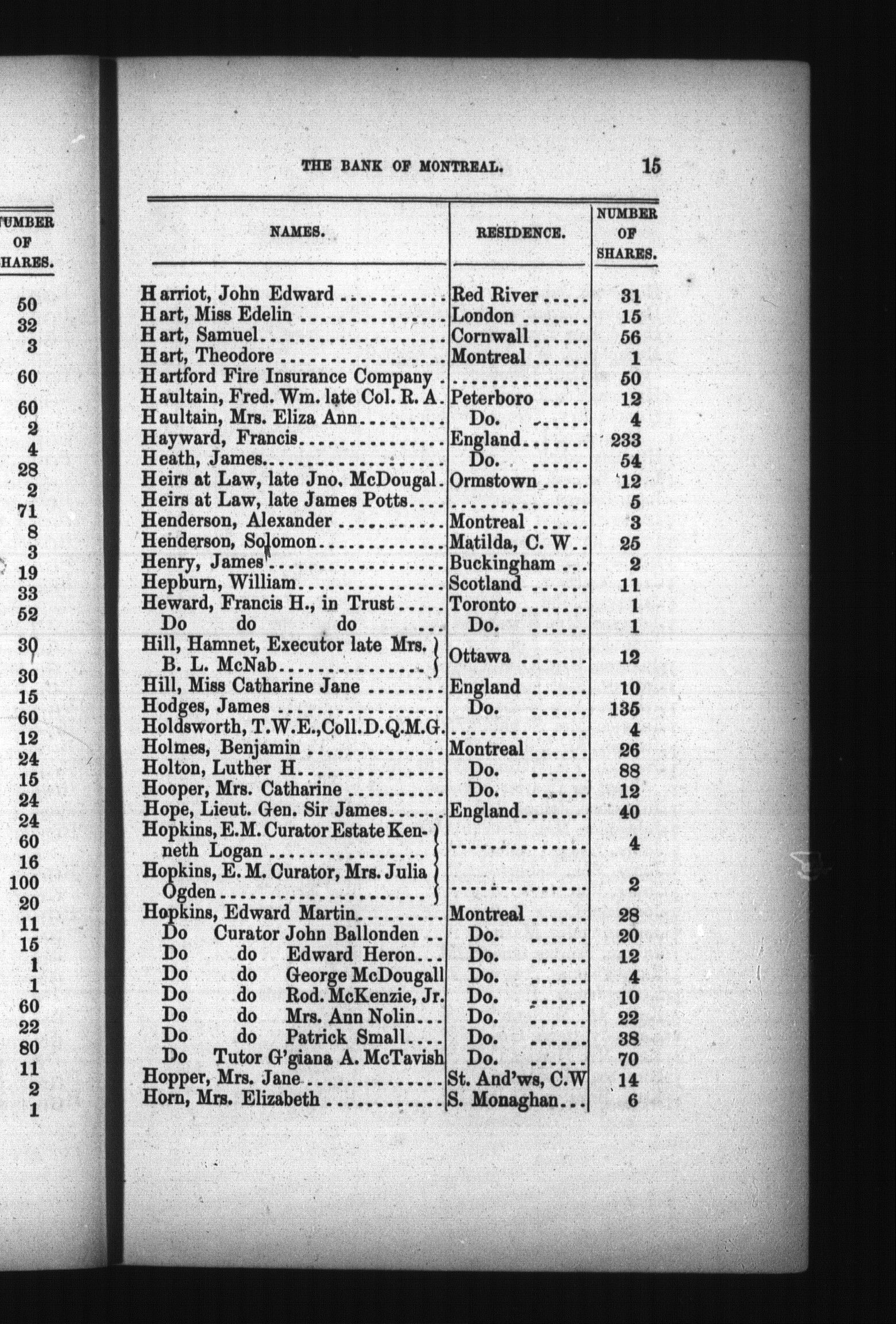 - List of stockholders of the Bank of Montreal, on the 31st May, 1861 : 1861