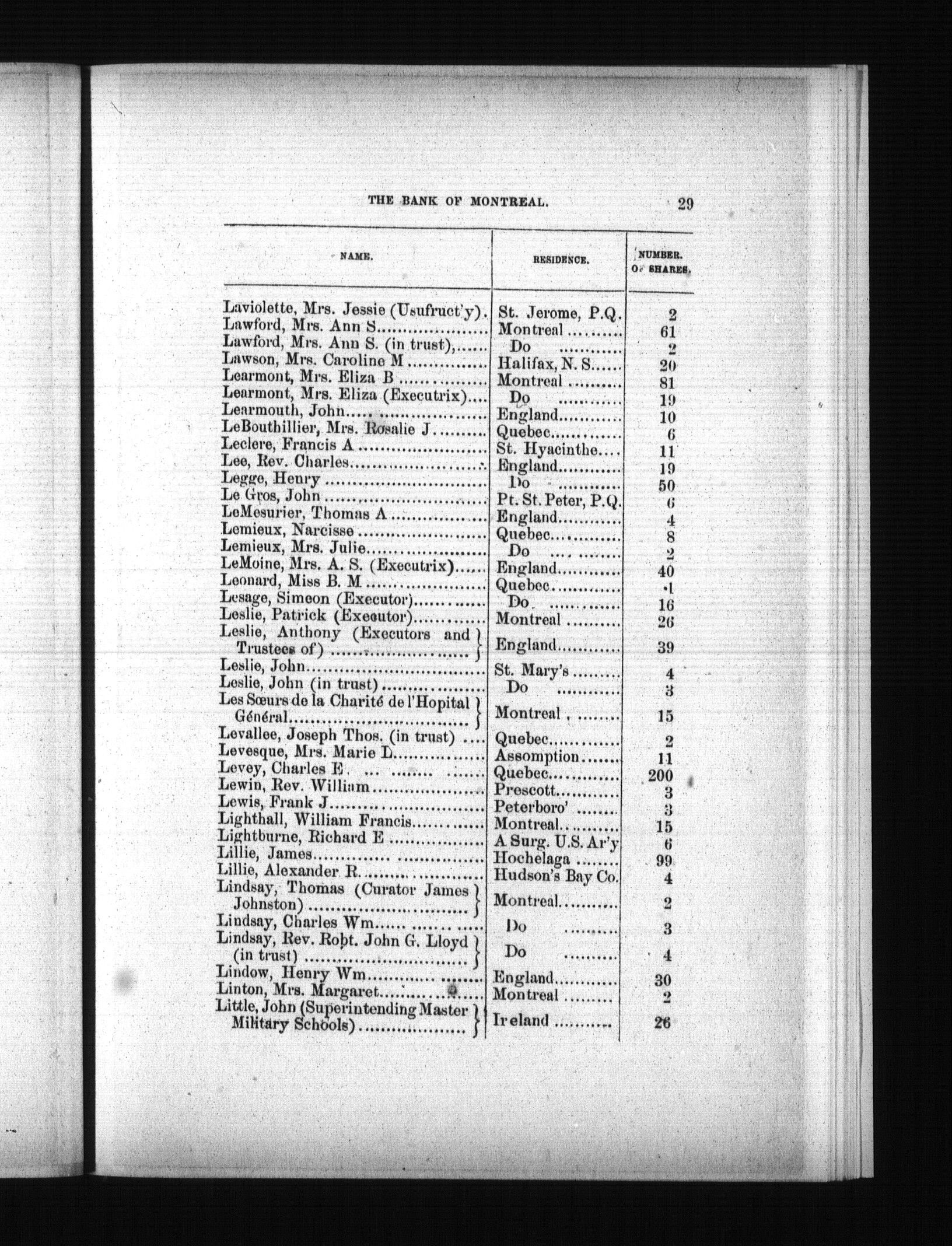 - List of stockholders of the Bank of Montreal, on 2nd June, 1879 : 1879