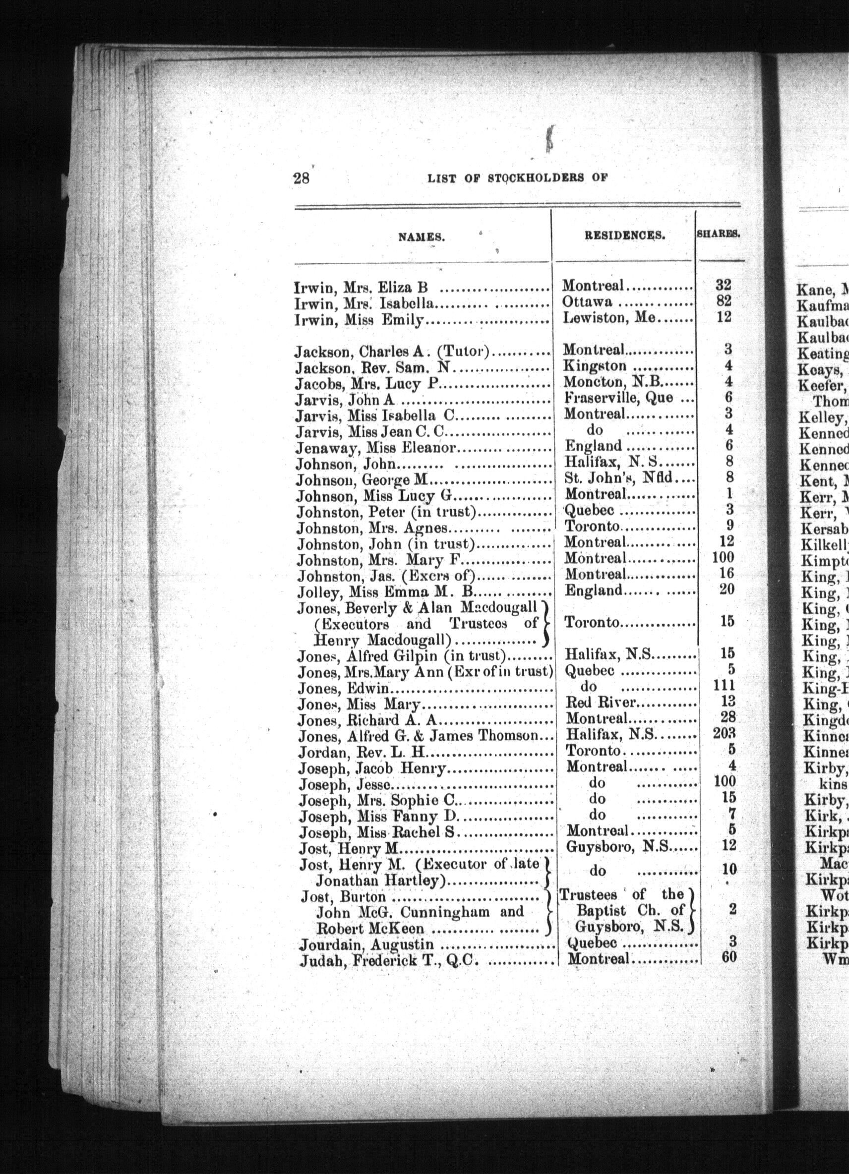- List of stockholders of the Bank of Montreal, of 31st May, 1896 : 1896