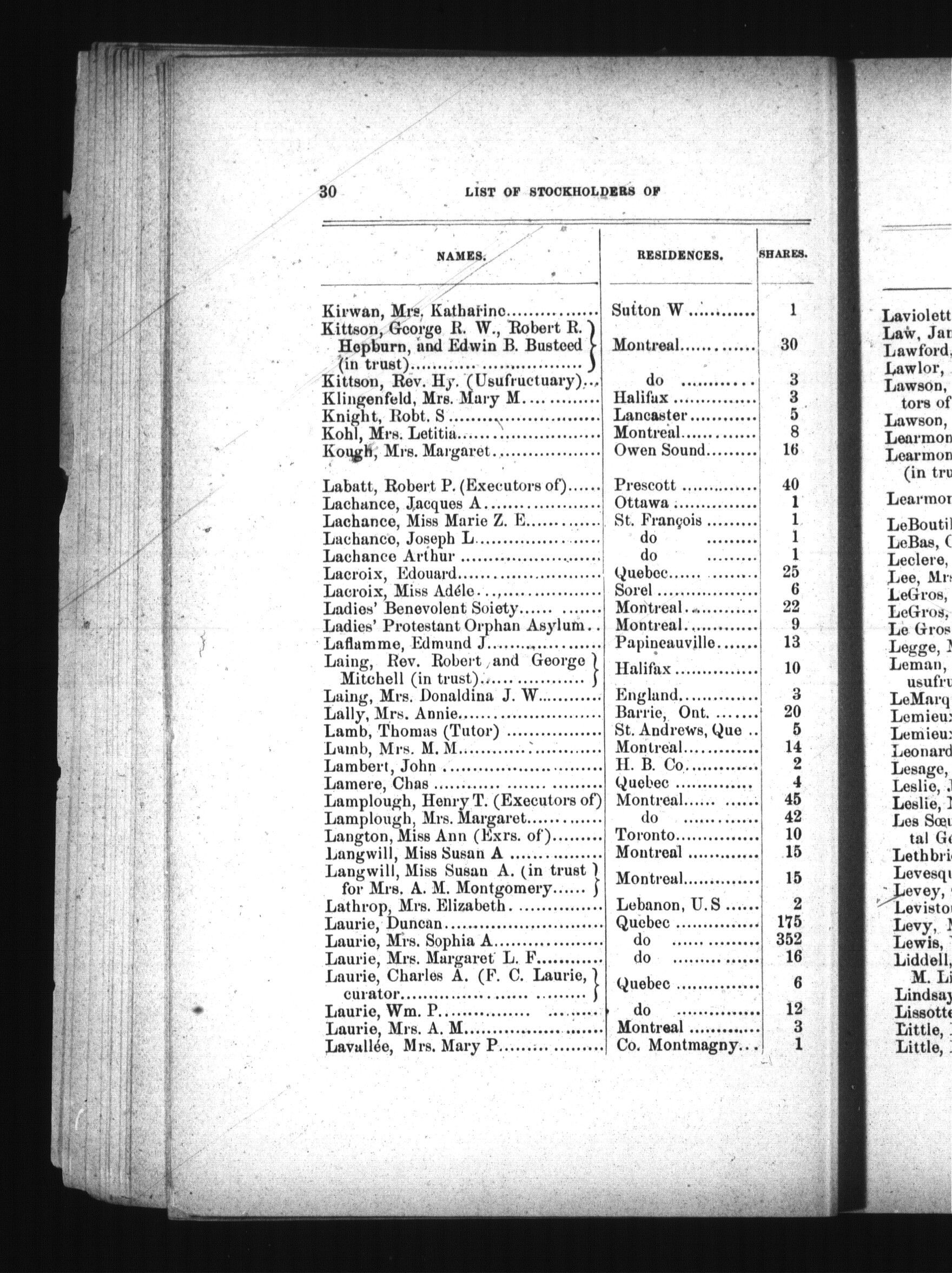 - List of stockholders of the Bank of Montreal, of 31st May, 1896 : 1896