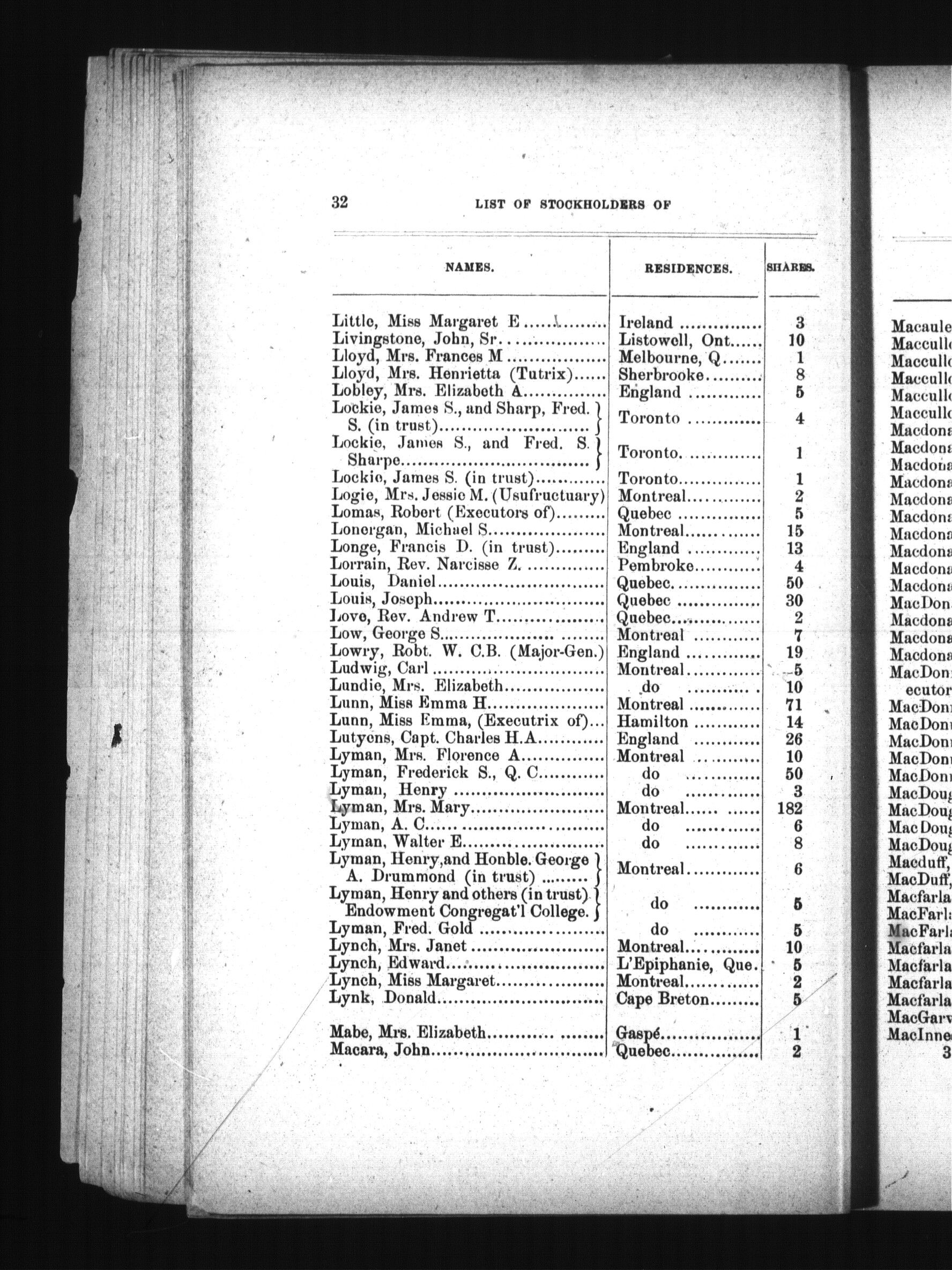 - List of stockholders of the Bank of Montreal, of 31st May, 1896 : 1896
