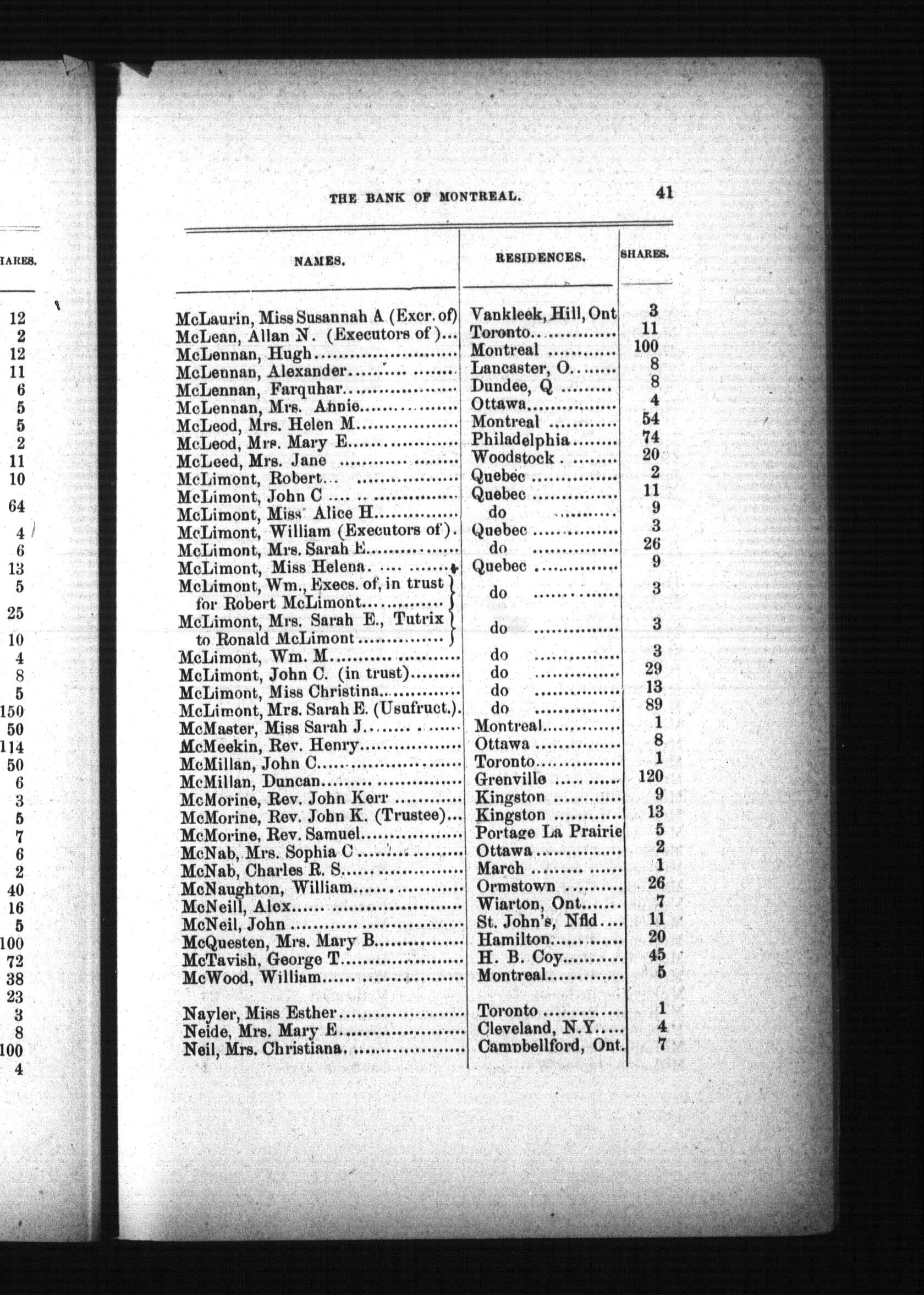 - List of stockholders of the Bank of Montreal, of 31st May, 1896 : 1896