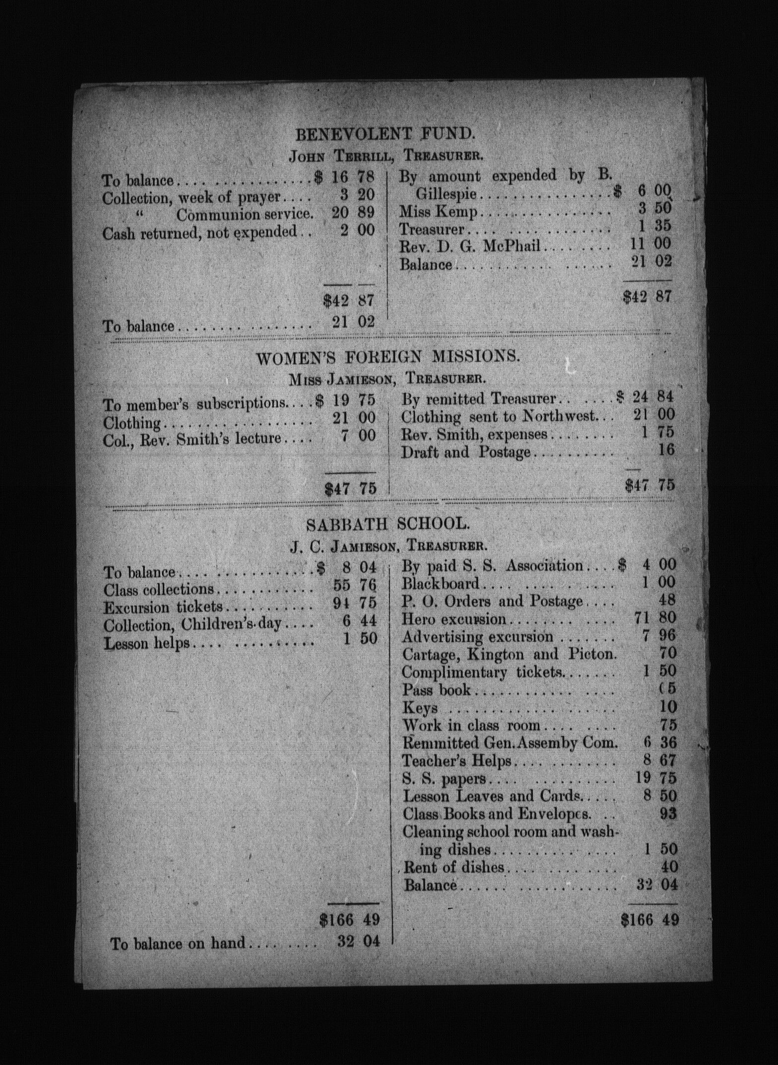 Financial statement for 1896 / St. Andrew's Church, Picton : 1896
