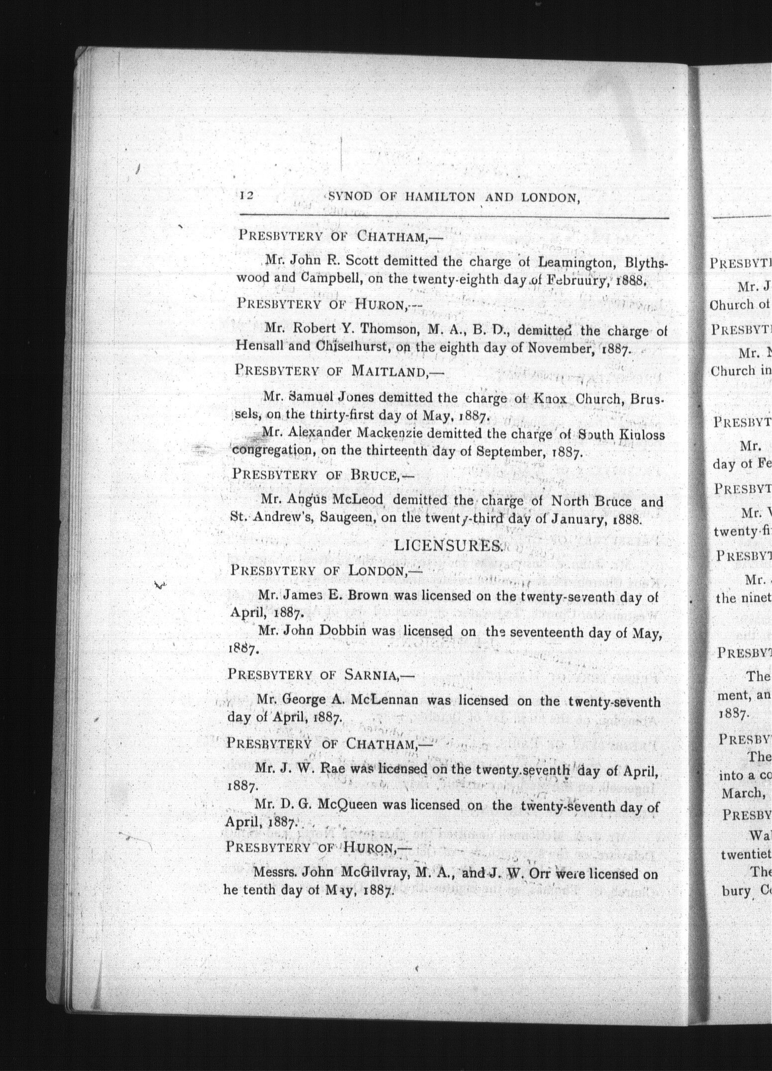 [Ontario] : [Synod of Hamilton and London, of the Presbyterian Church in Canada], 1888; 34 images, 33 avec recherche en texte intégral